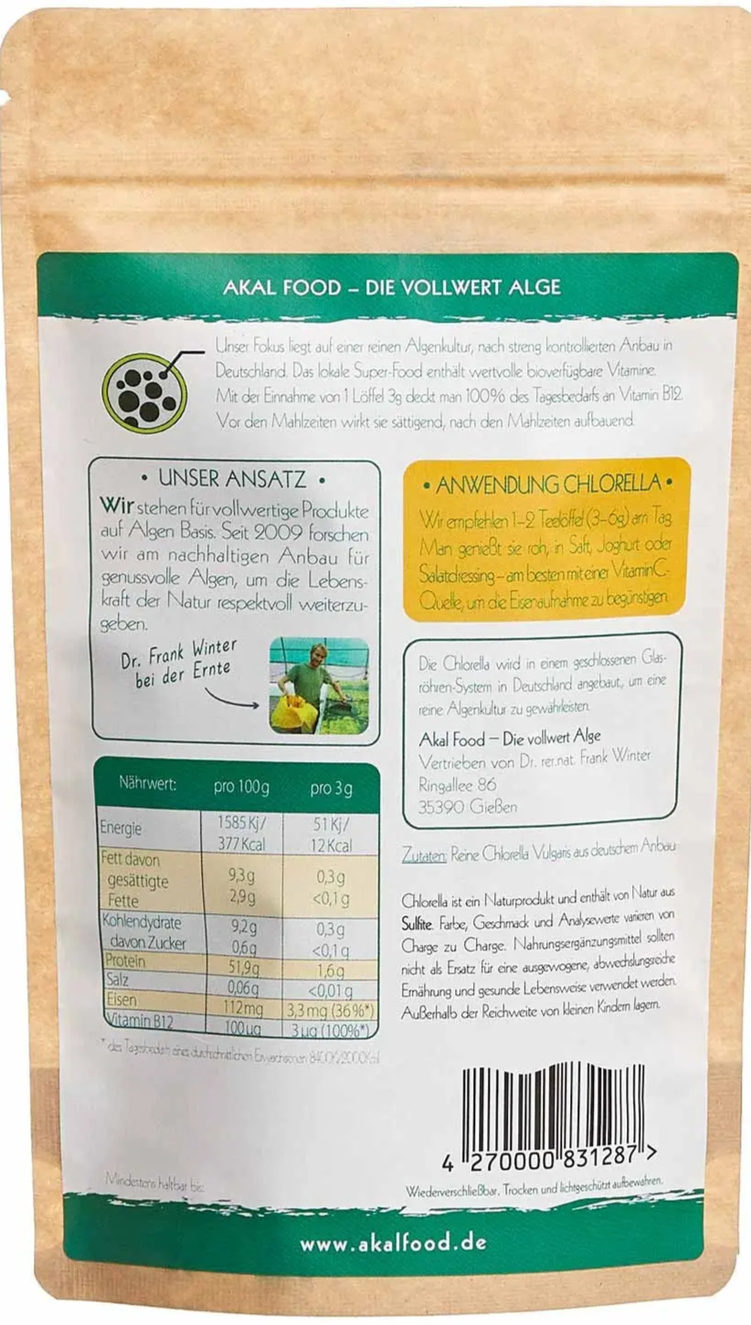 Ingredients: Chlorella vulgaris powder from German cultivation