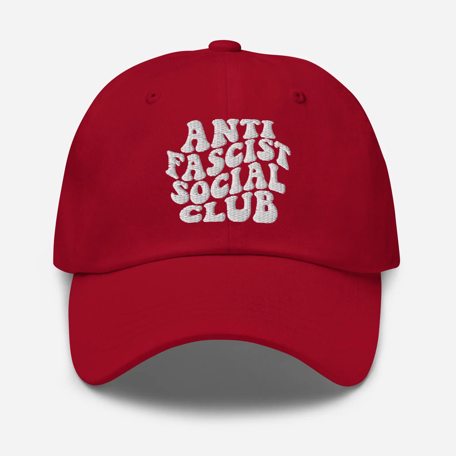 Make a statement with our best selling Anti Fascism Social Club hat from Resistance Nation! Embroidered unisex 6-panel 100% cotton twill cap with adjustable buckle closure. Fits most adults.
