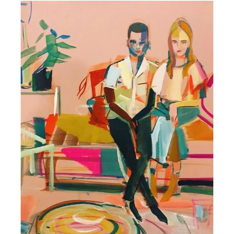 Painting from zoom session. The painting is 14 x 18. Gouache on paper. Selection of paper colors available at appointment. Sessions are very casual. You sit for 25 minutes in your home environment. There is no need to pose or stay perfectly still. It is acceptable to bring snacks and drinks as well as distractions for children. If you choose to use a screen it will not be depicted in the painting. These paintings are estimated to be mailed within 2 weeks from your painting session . Basic Zoom sessions DO NOT include follow up work. You will see the painting as soon as your session is done. No changes will be made once your session ends. Once you purchase this item please contact my email with a screenshot of your receipt. Daughtersandsuns@gmail.com . My booking assistant will help you schedule your session from this point.