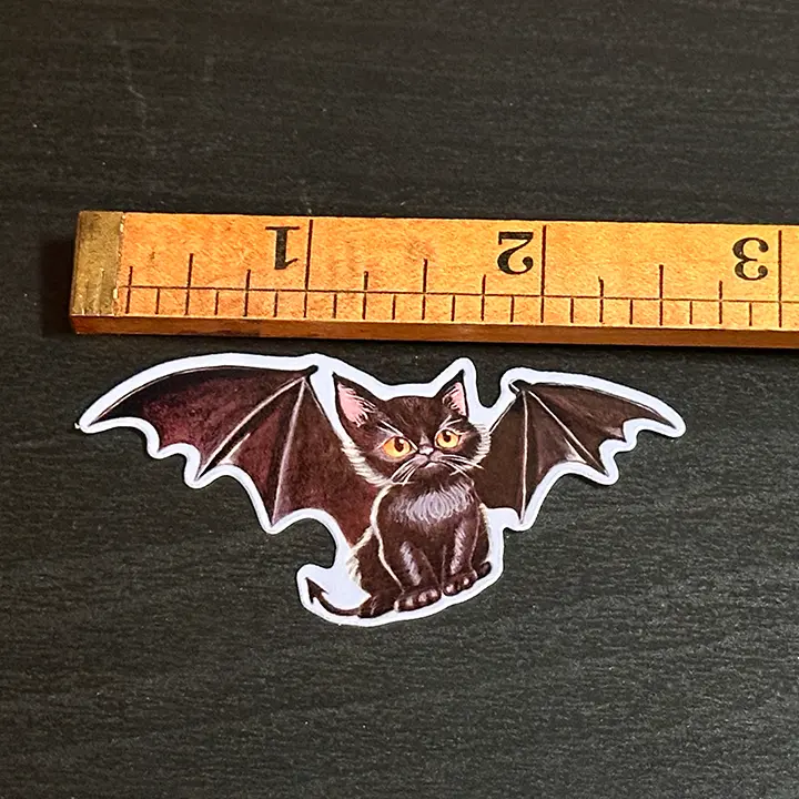 Batcat Art Vinyl Sticker: Gothic Whimsical Cat Decal, Original Hand-Painted Art