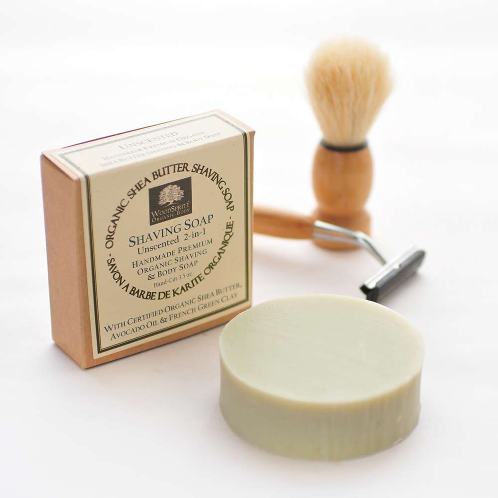Our 2-in-1 Organic Shaving + Body Soaps are specially formulated with Organic Shea Butter & French Green Clay to give a lubricating, creamy lather for a clean & incredibly smooth shave that won’t dry your skin. Natural Bentonite Clay gives a closer shaving experience by making a more “slippery” surface for your razor to glide on, while rich organic shea butter and avocado oil condition, soften and moisturize the skin.