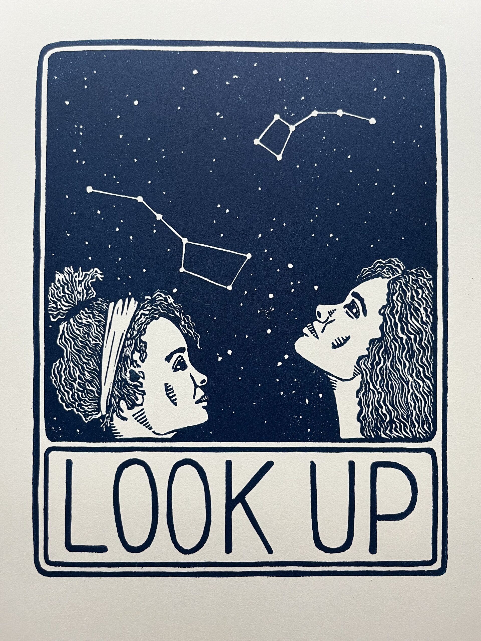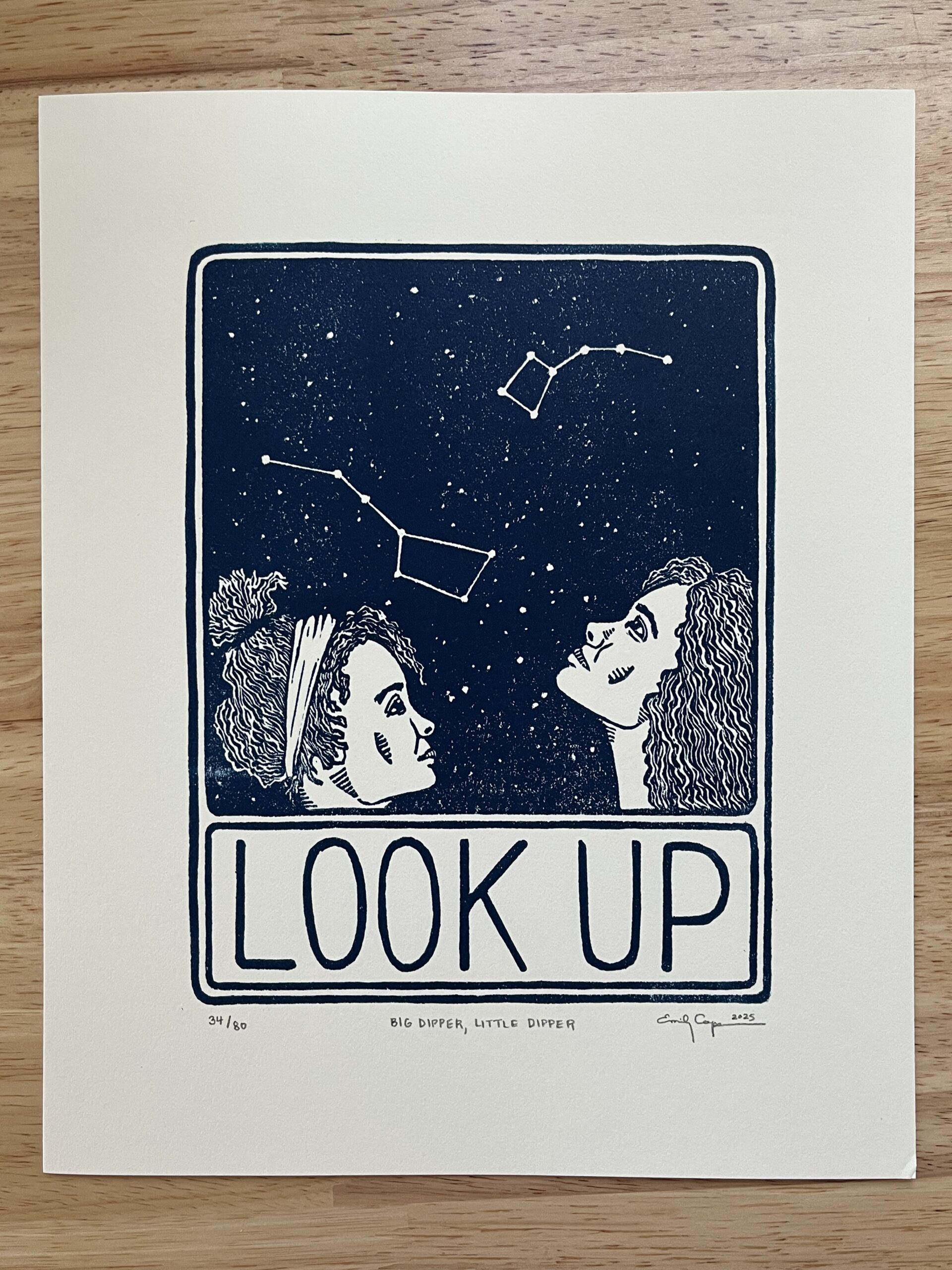 “Big Dipper, Little Dipper” Limited Edition Linocut Print – look up artwork, block print