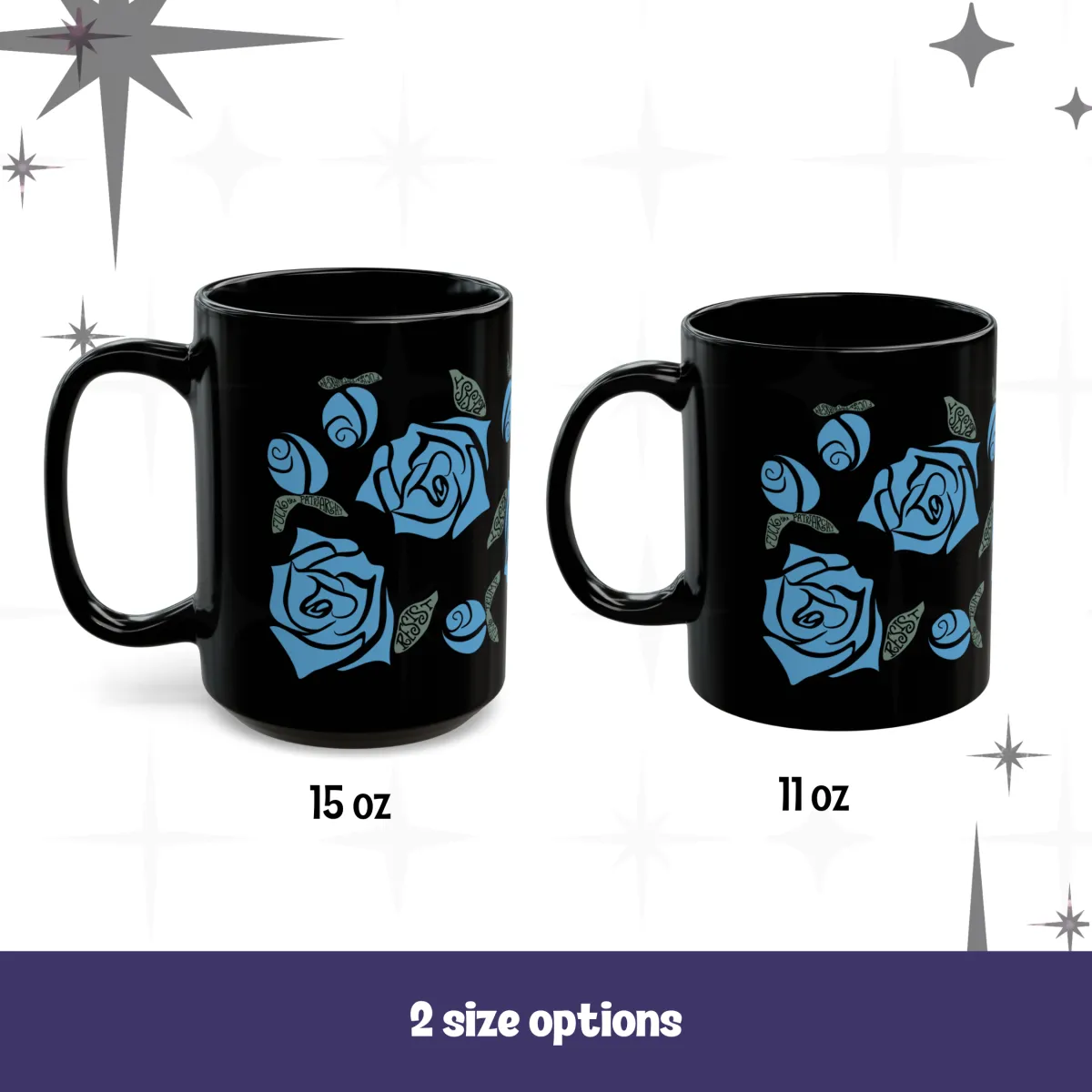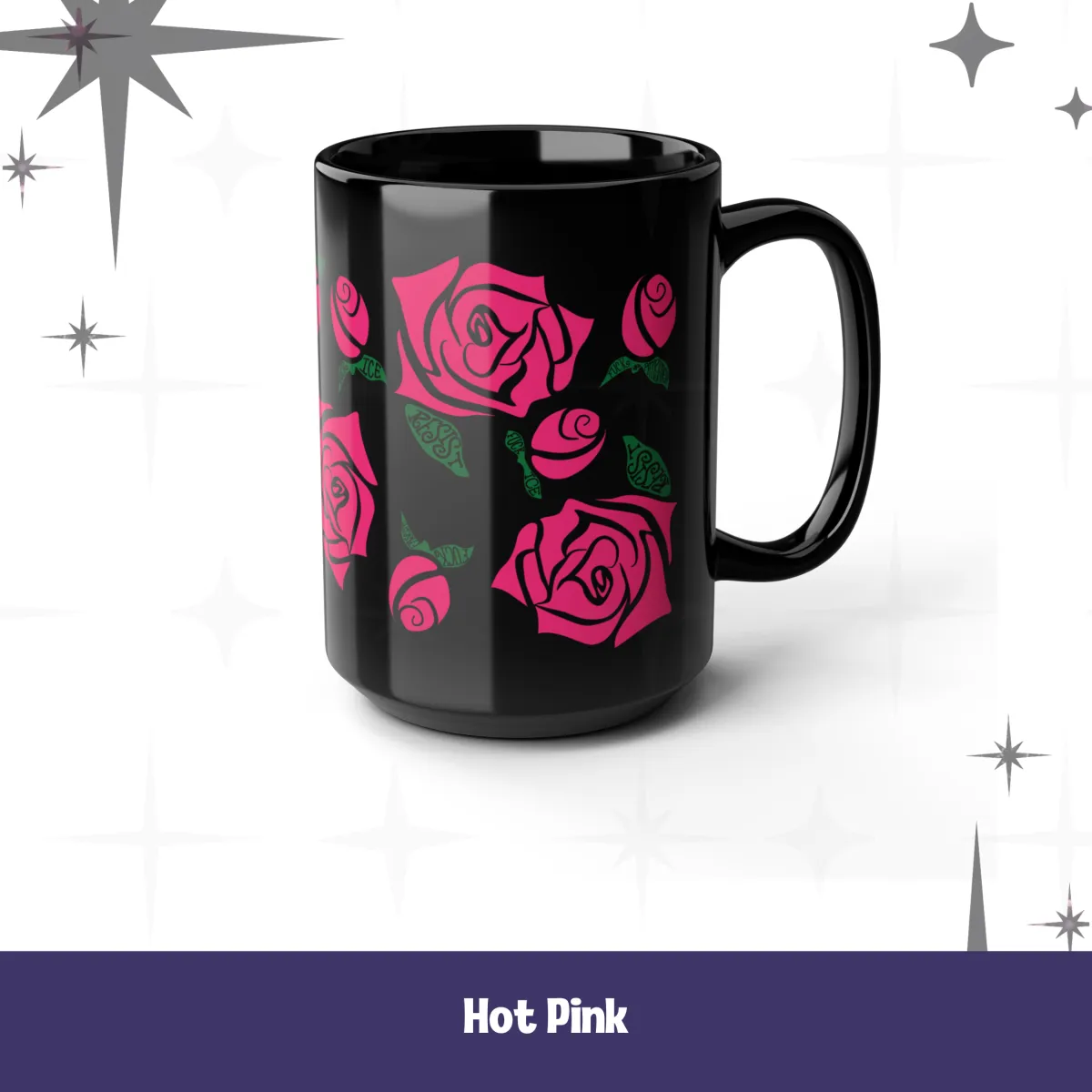 Black Ceramic Mug. Activist Rosebuds, Two Sizes, Three Colors- Adult Language