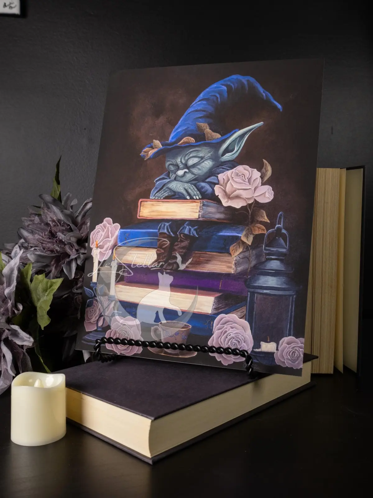 Book Goblin Art Print: Dark Academia Wizard with Witch Hat Acrylic Painting