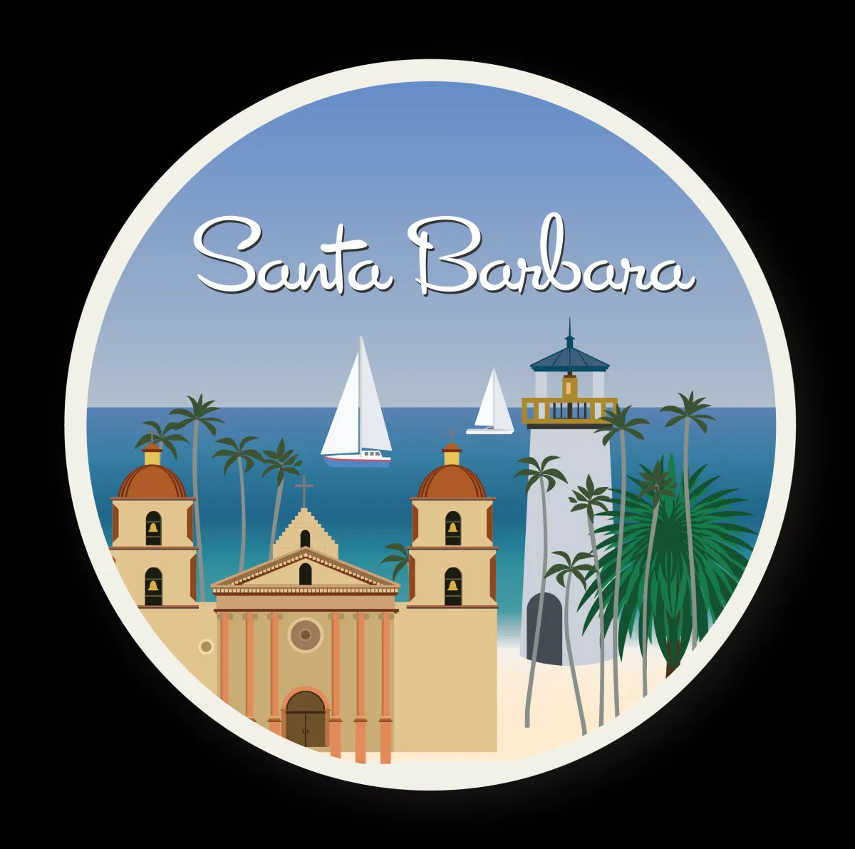 California illustrated sticker collection. Eight 3”x3” round vinyl collectible stickers plus one surprise additional sticker that is only available in this collection. Stickers include the San Diego, Huntington Beach, Santa Barbara, Monterey, Big Sur, Hearst Castle, Napa Valley, and San Francisco.
