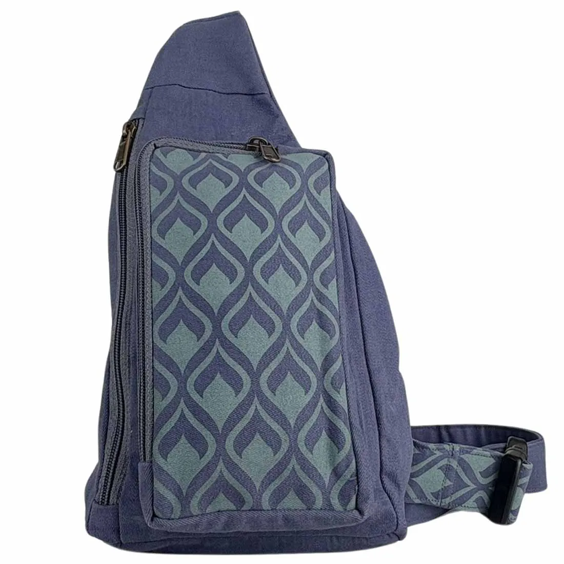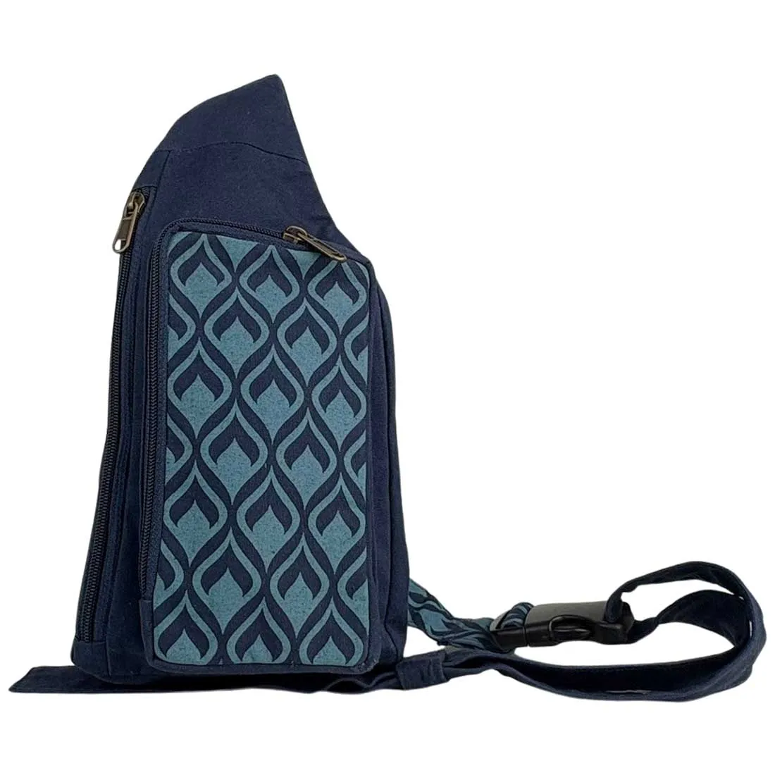 The cutest shape and size. This sustainable backpack can be worn more than one way. Wear it on your shoulder, as a crossbody with the bag on your back or front side! Crafted from a durable upcycled cotton canvas. The screen printed strap and outer pocket give it just the right amount of fair trade flair. Also machine washable!