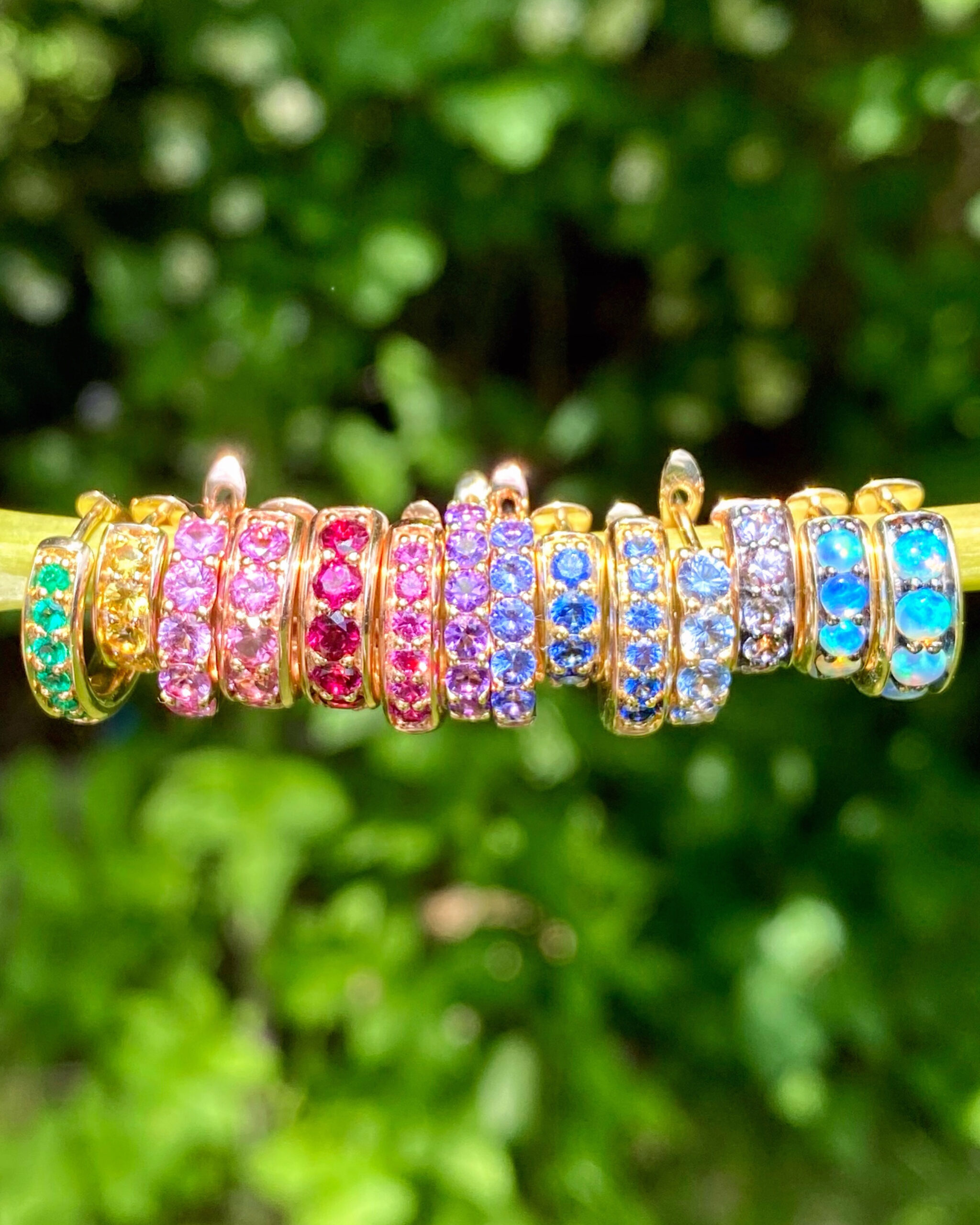 Our delicate Slim Pavé Huggies got a size upgrade with bigger gemstones! They’re great for the minimalist ear party lover looking for just a little more oomph from their huggies!