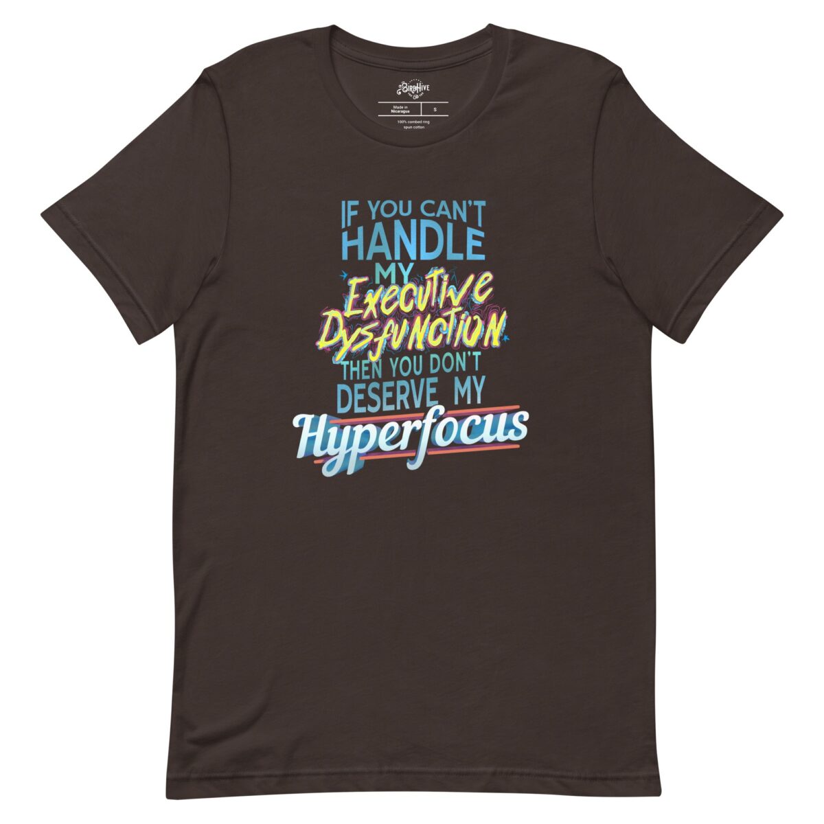Nothing comes close to the pure hyperfocus that comes with a neurodivergent brain. Get 2 weeks of work done in 1 day? No problem! Once you overclock your brain though, there’s a toll and that’s called Executive Dysfunction. So wear this design on our comfy cotton Tees to remind yourself that your Executive dysfunction days are your rest days. The hyperfocus will come back when you’re ready.
