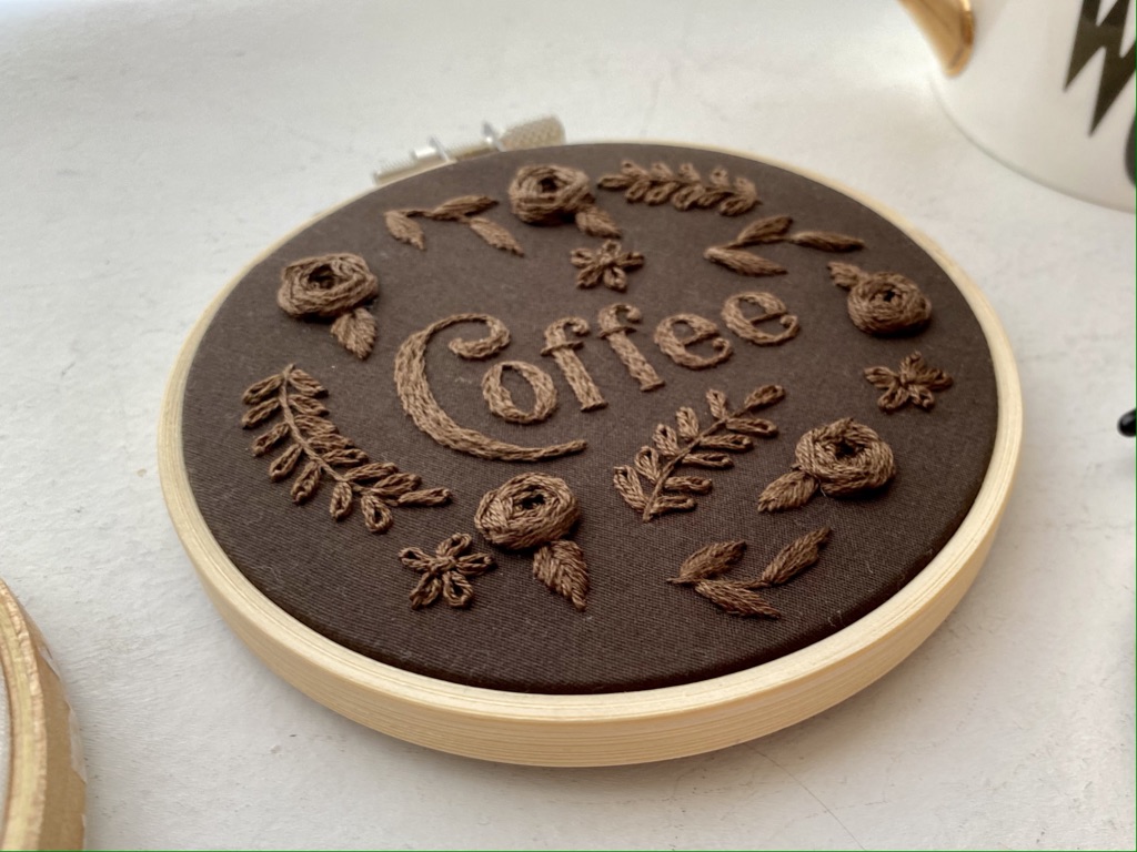 Coffee monochrome embroidery // PDF Pattern Download 4″ Hoop