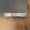 Sticker is hand-drawn by Rachel of Lemon Press Studio, featuring an illustration of seven multi-colored tiles in a row, printed on clear vinyl