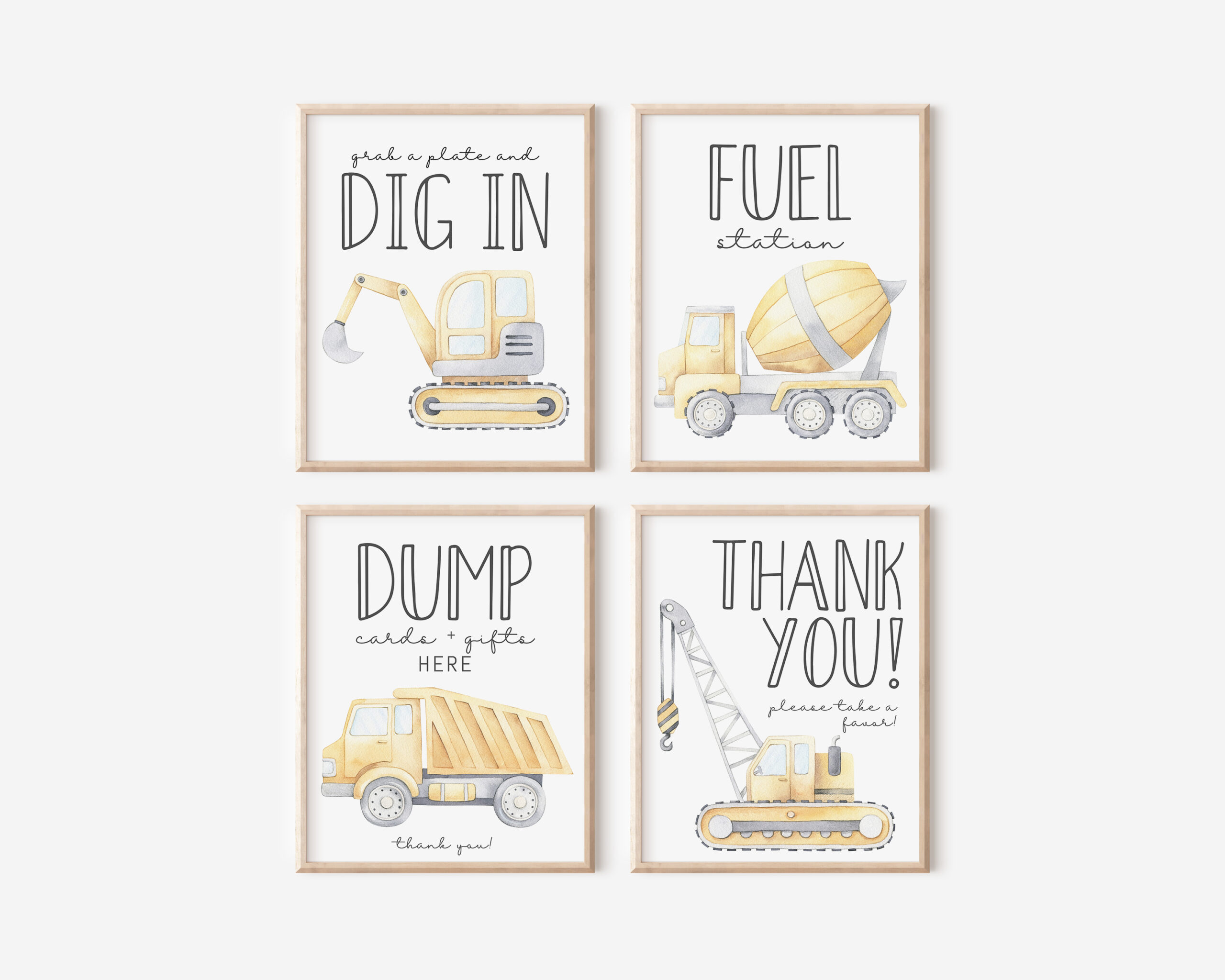 Construction Birthday Bundle – Modern Watercolor Excavator
