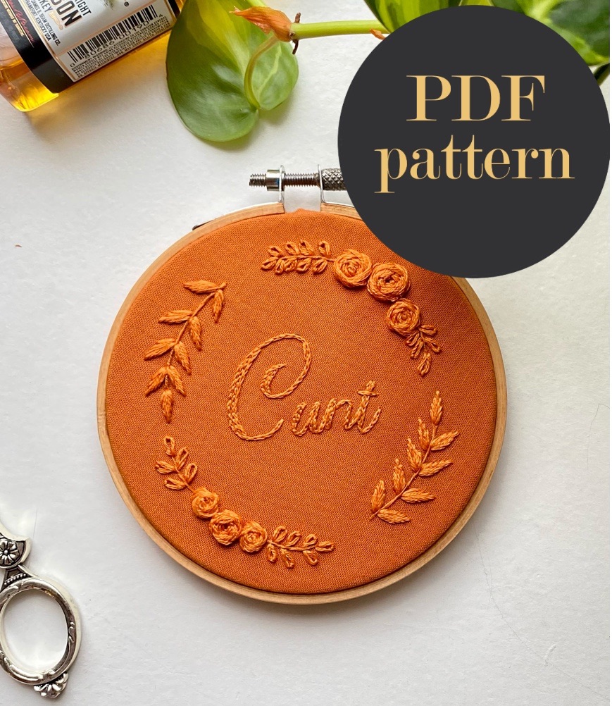 Cunt monochrome embroidery // PDF Pattern Download 4″ Hoop