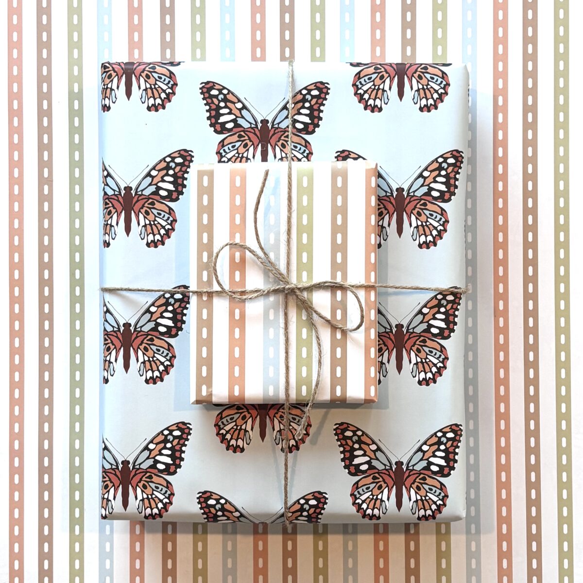 Double Sided Wrapping Paper in Butterfly-Stripe