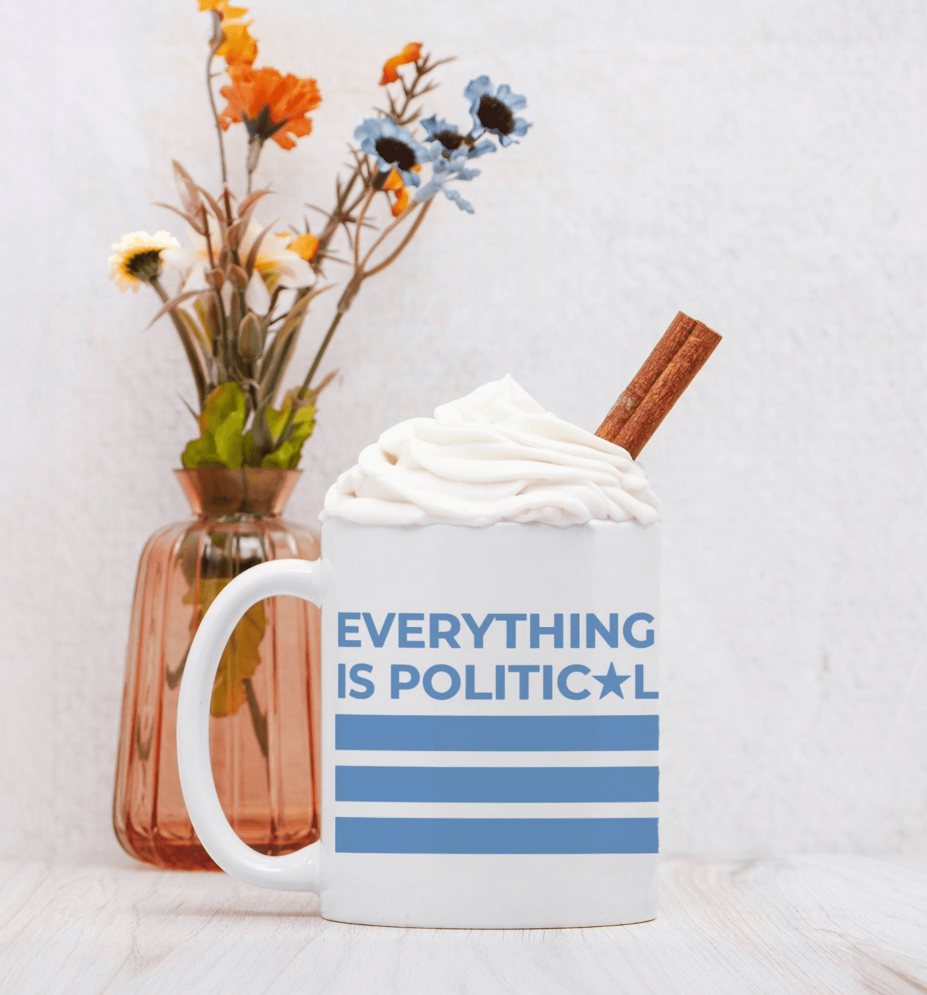 Start your day with a little truth and a lot of caffeine. This classic white ceramic mug features “Everything is Political” in bold blue lettering—because let’s be real, it is. Whether you’re sipping coffee while catching up on the news or fueling up for a day of activism, this mug is the perfect companion.