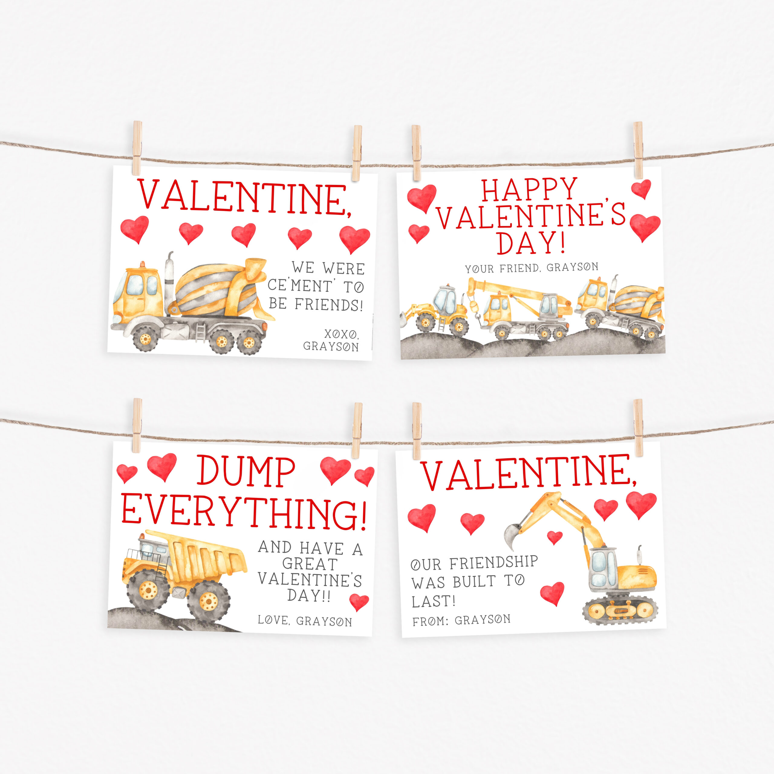 ❤️ Let your little one show their classmates how much they appreciate them with our fun Construction Truck Valentine Cards.