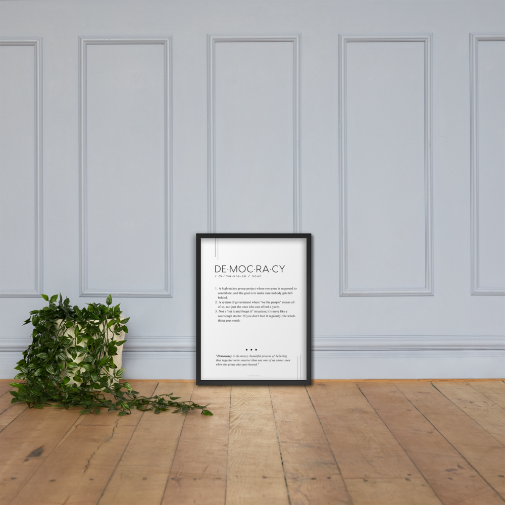 This framed poster features an editorial definition designed to be read, noticed, and lived with. Thoughtful, pointed, and quietly bold, it turns language into a daily presence—something you don’t just glance at, but return to.