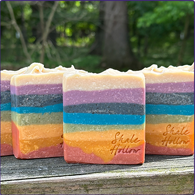 Ingredients include organic cocoa butter, vegetable glycerine, and organic grapeseed oil, in addition to the luxurious richness of raw goat milk. Those with sensitive skin or known allergies, please contact me directly (by email is preferred at shop at shalehollow dot com) for custom batches!