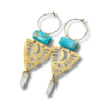 Bold brass shields moon cutouts, aqua Impression Jasper, and crystal quartz make a statement.