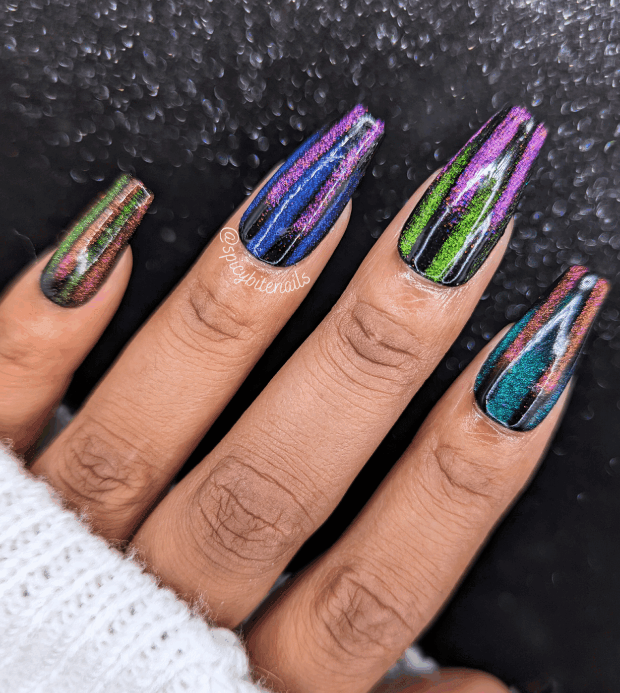 Starlight Soirée – 3D Multi-chrome Art Deco Style Press-On Nail Extensions 10pcs