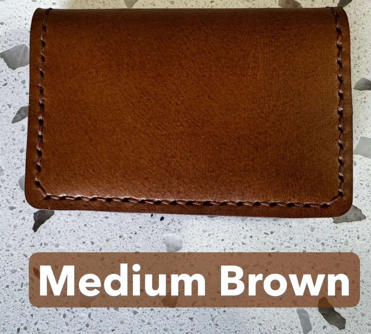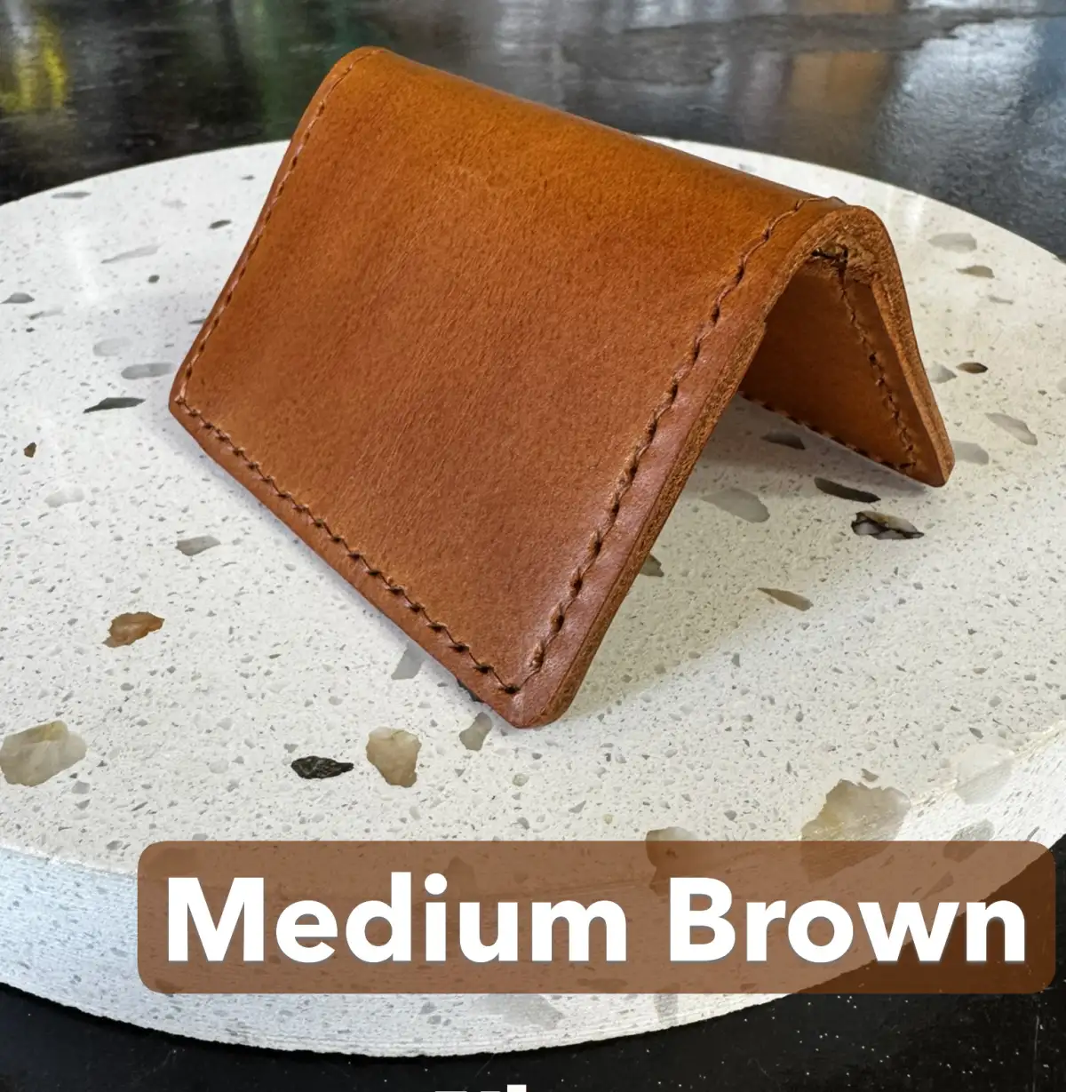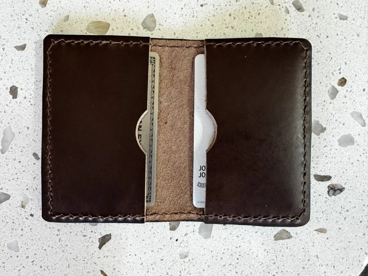Handmade Folding Leather Card Wallet with Two Pockets Holding Six Cards or More plus Cash