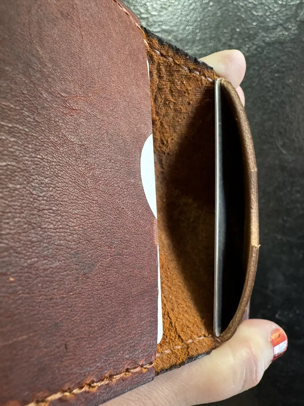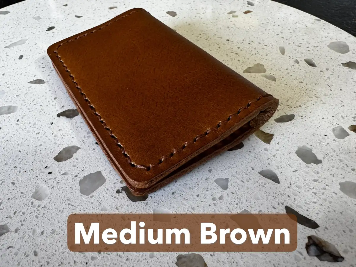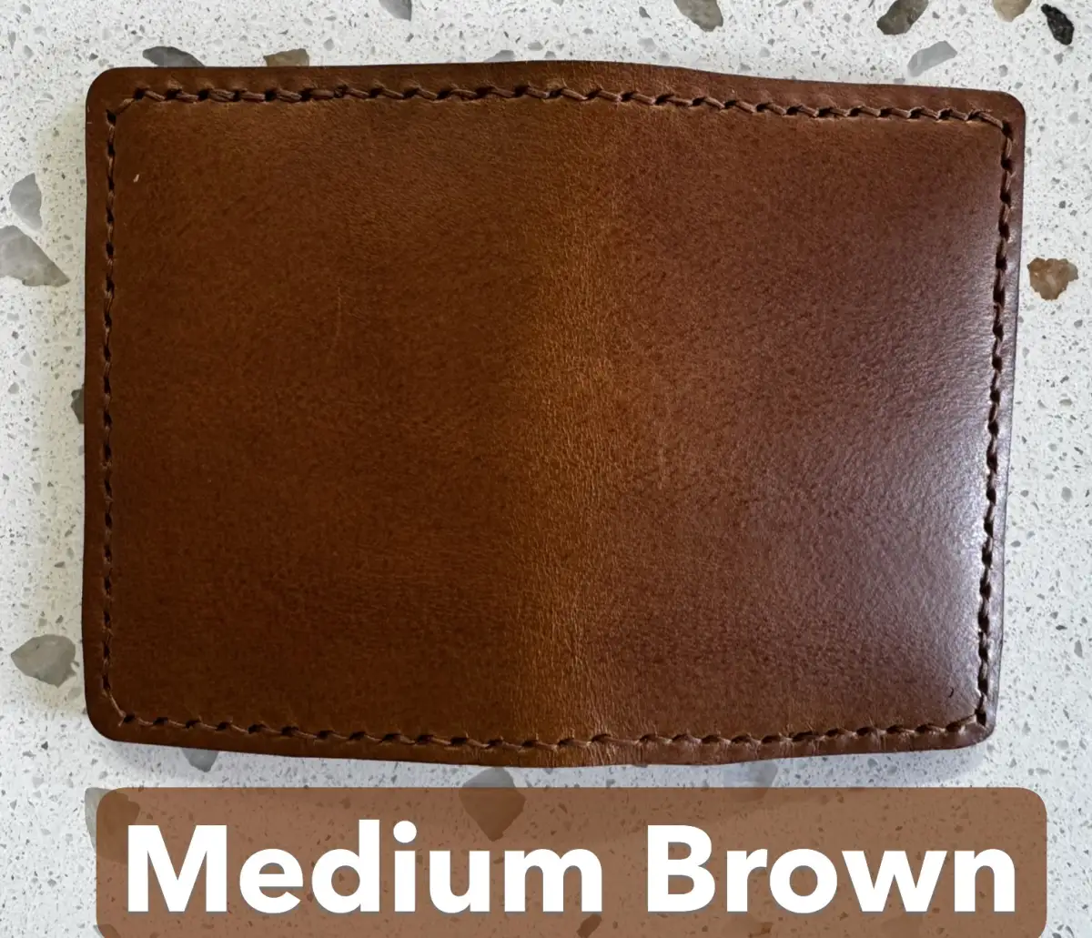 Handmade Folding Leather Card Wallet with Two Pockets Holding Six Cards or More plus Cash