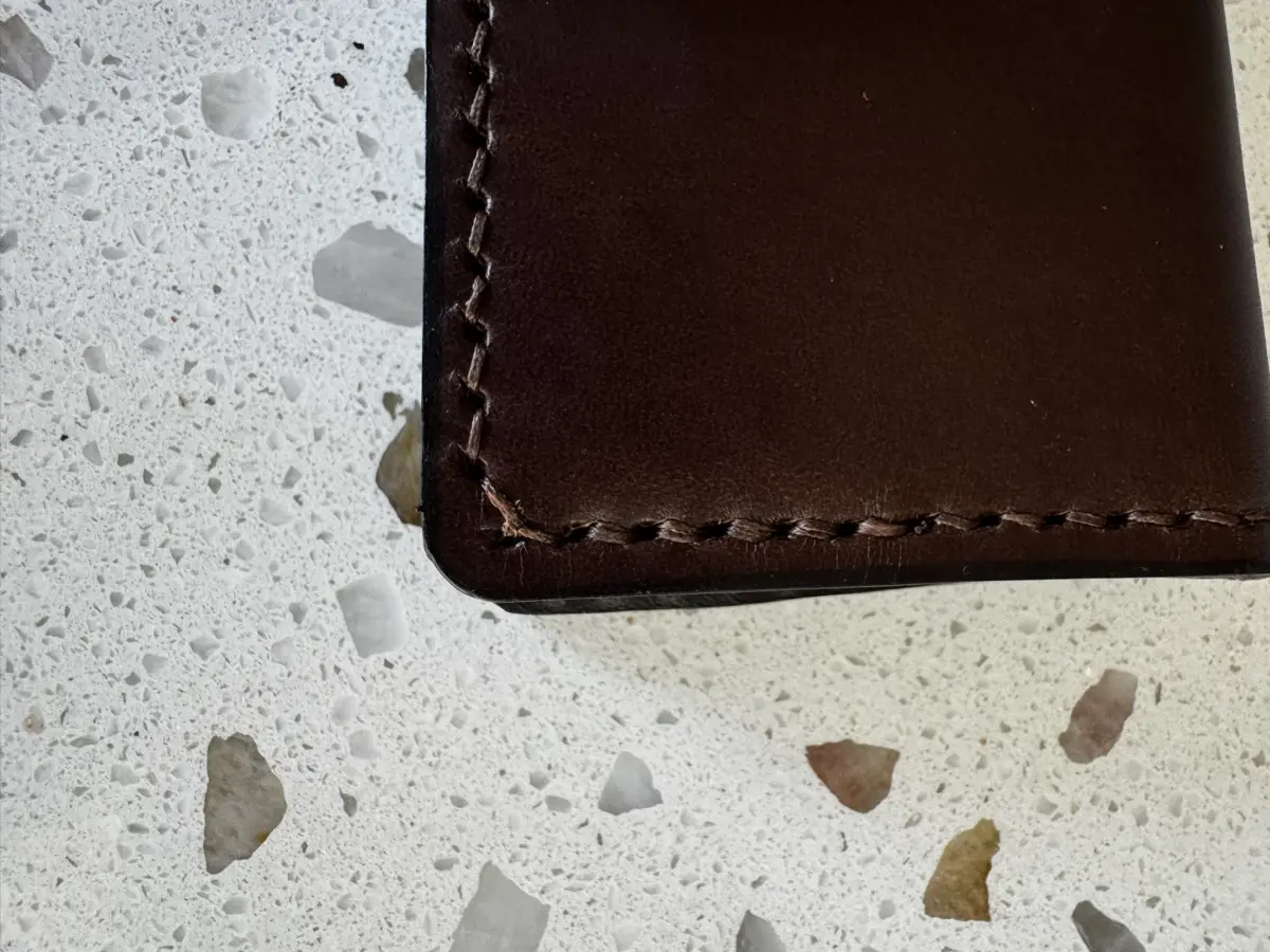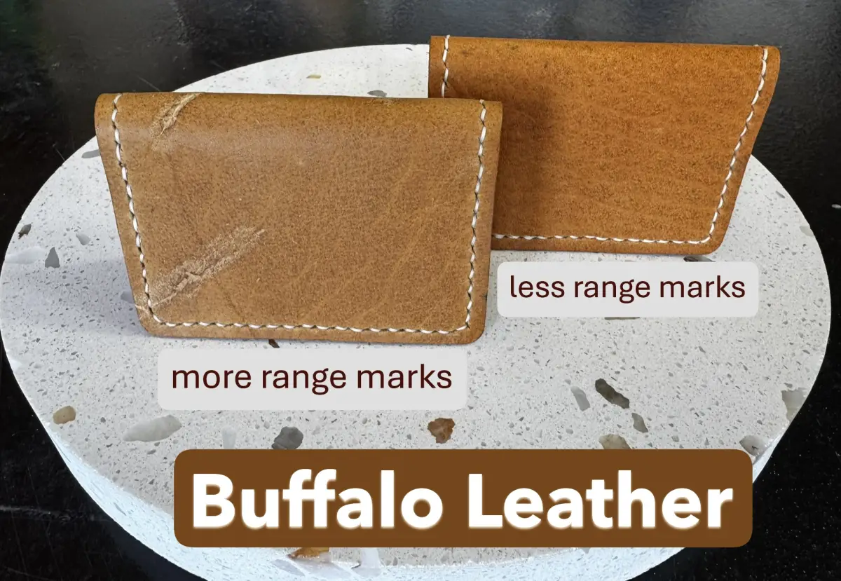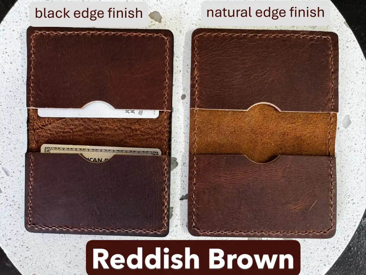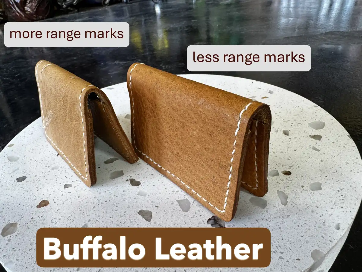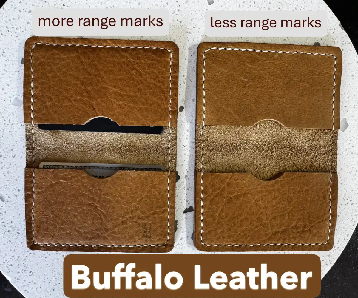 Durable and sturdy card wallets can carry cards on both sides, or cash on one side and cards on the other. Card wallets will initially fit three cards per side, but will accommodate more cards over time. These will wear and patina beautifully. The buffalo leather has a soft, almost velvety feel.