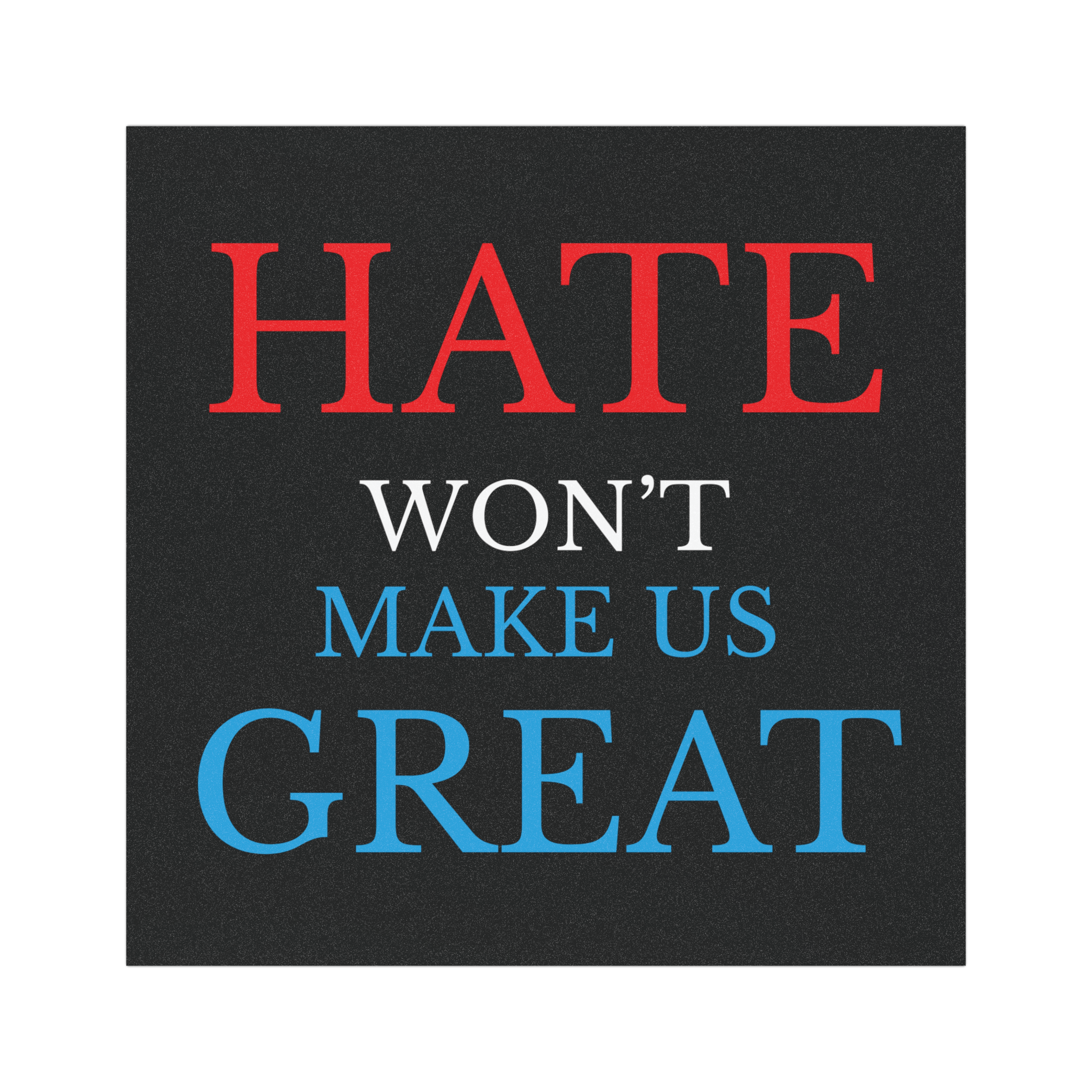 Make your car a statement for love and unity with this bold “Hate Won’t Make Us Great” bumper magnet.