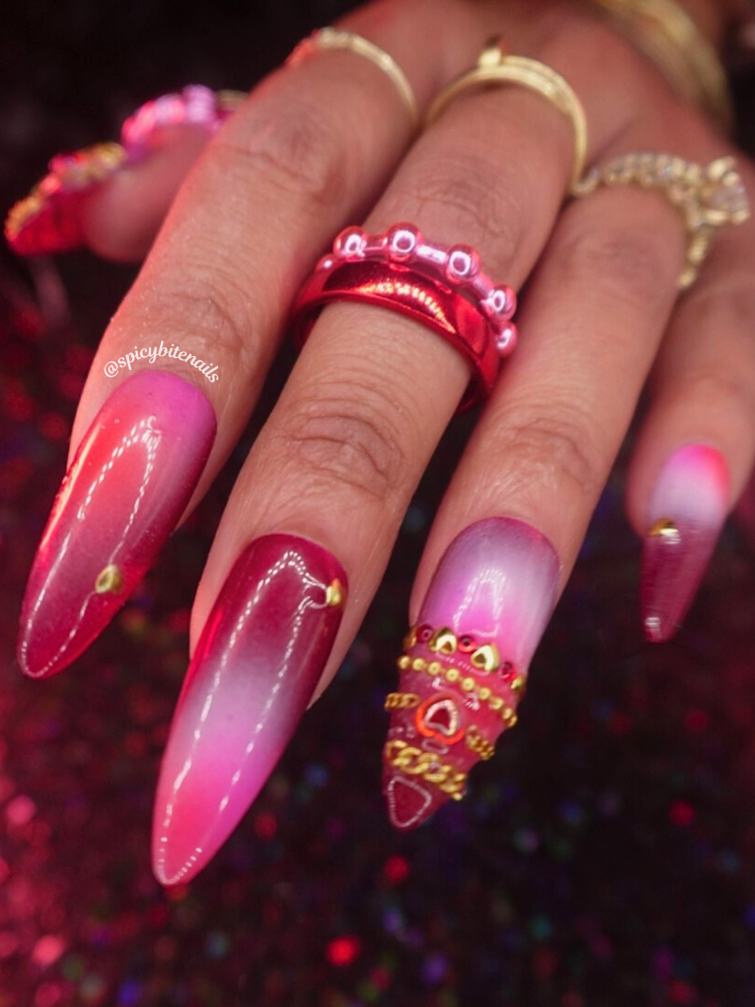 Hearts & Heirlooms – Red and Pink Aura Gold Bangle Press-On Nail Extensions 10pcs
