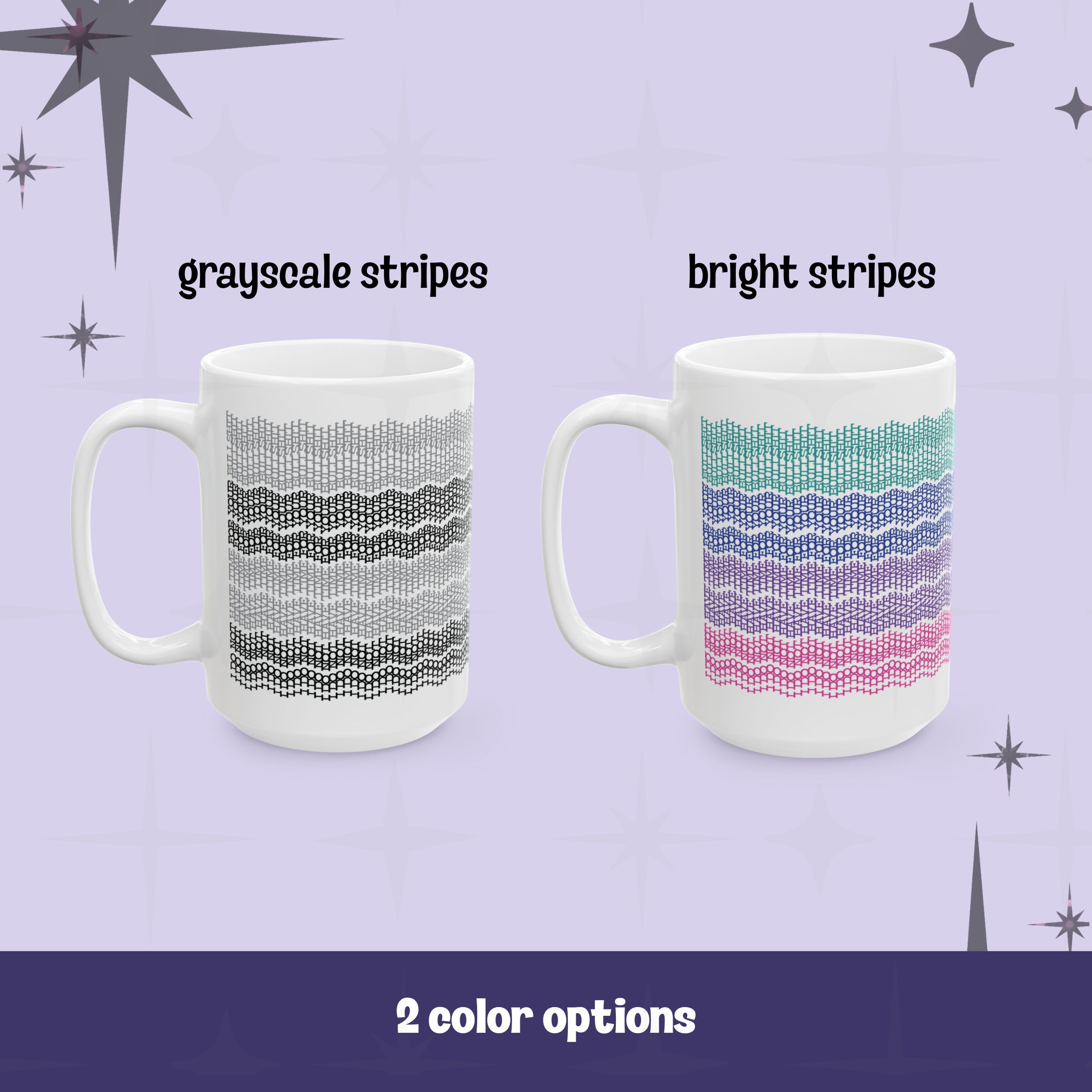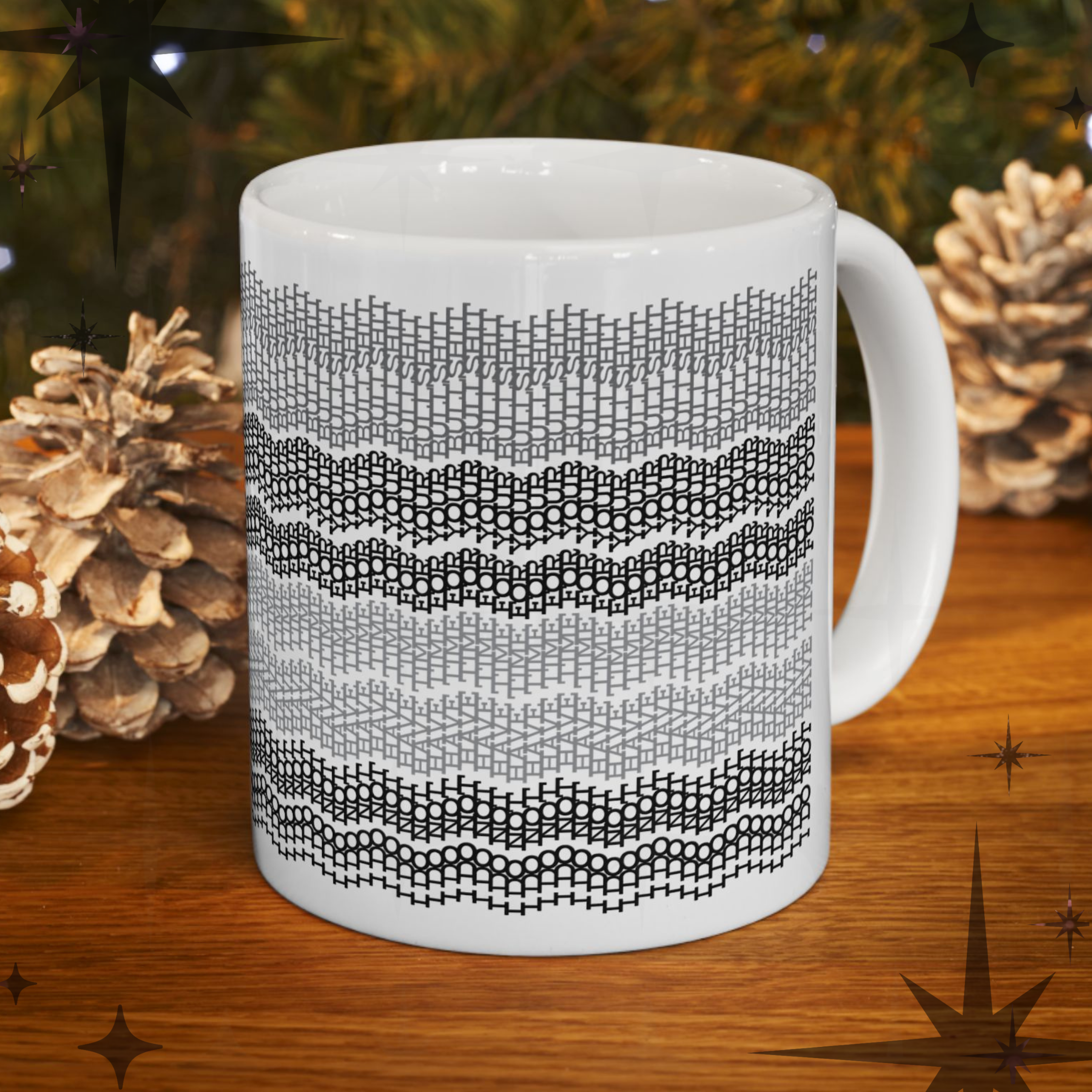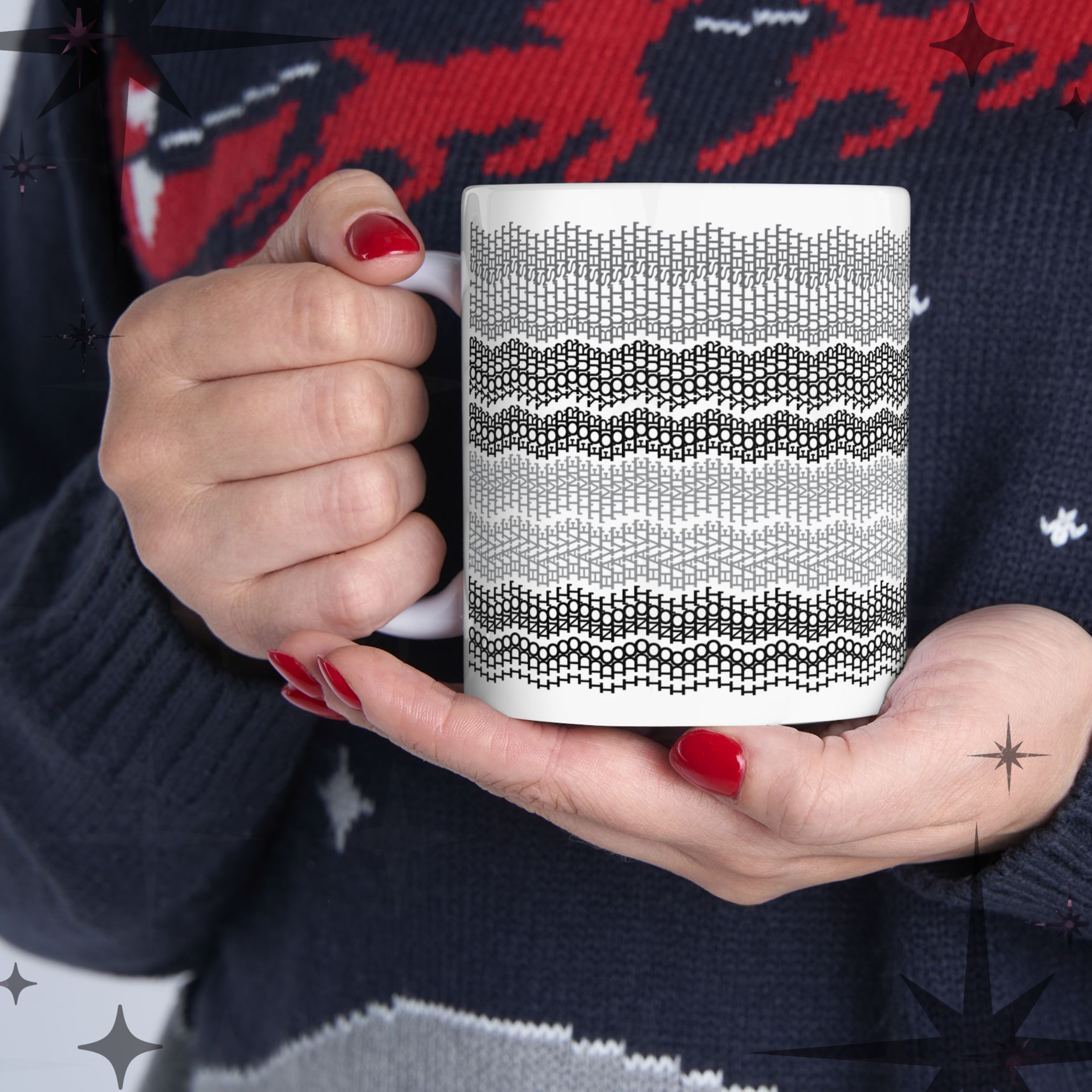 - Grayscale color gradient: Crisp black-and-gray geometric design resembling embroidery or a cozy sweater