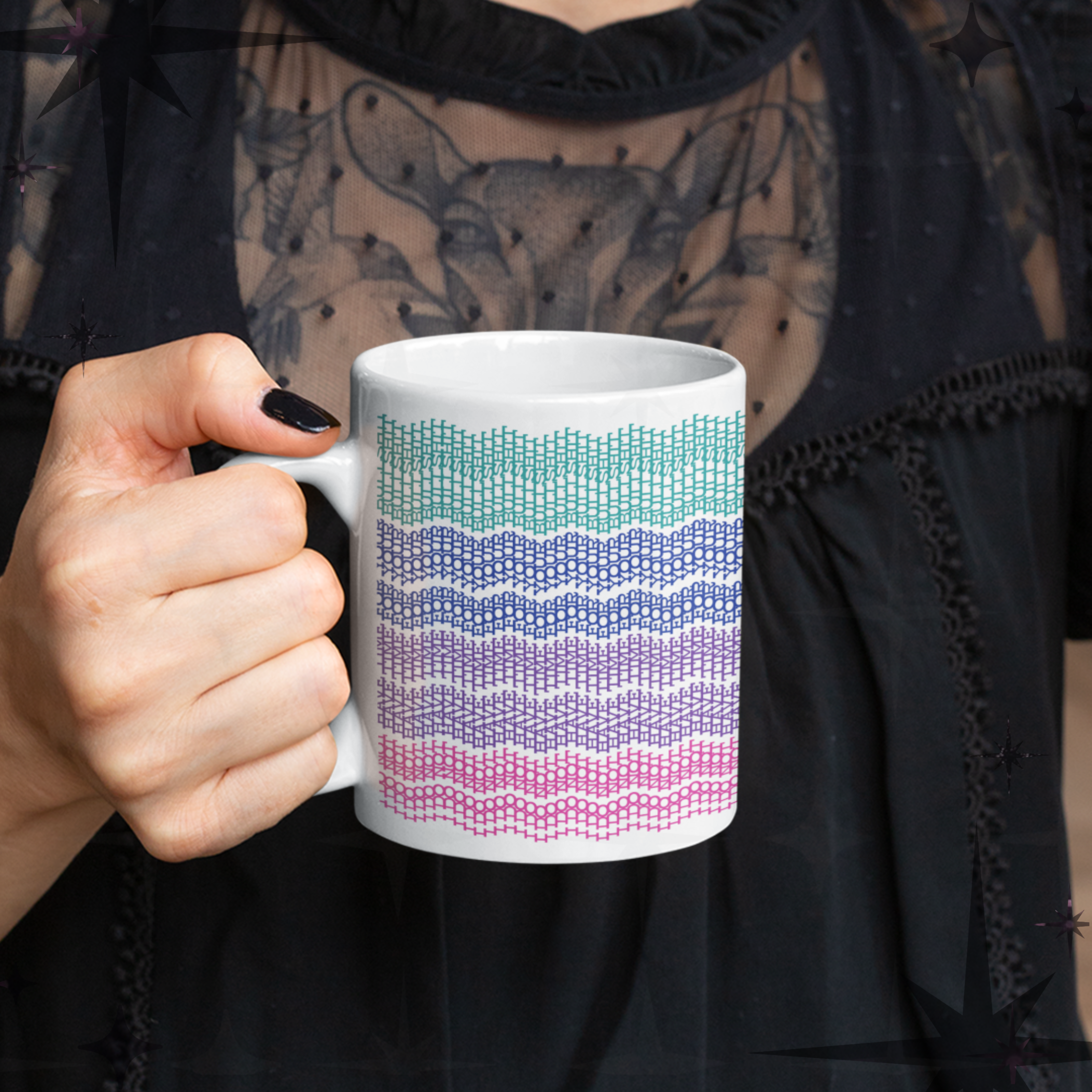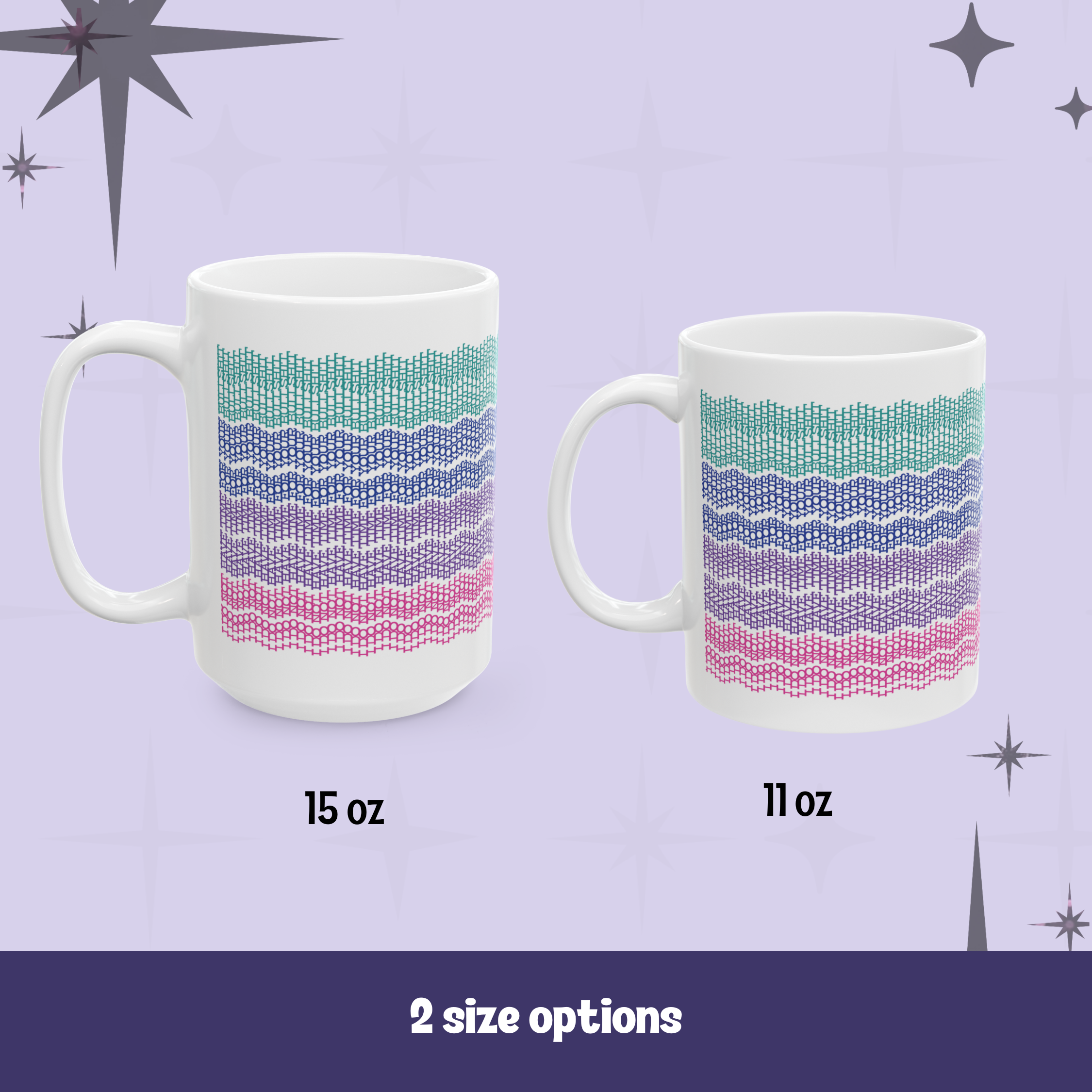 - Vibrant color gradient: Rich tones fade from teal to blue, purple, and magenta, creating a cozy, handmade vibe.