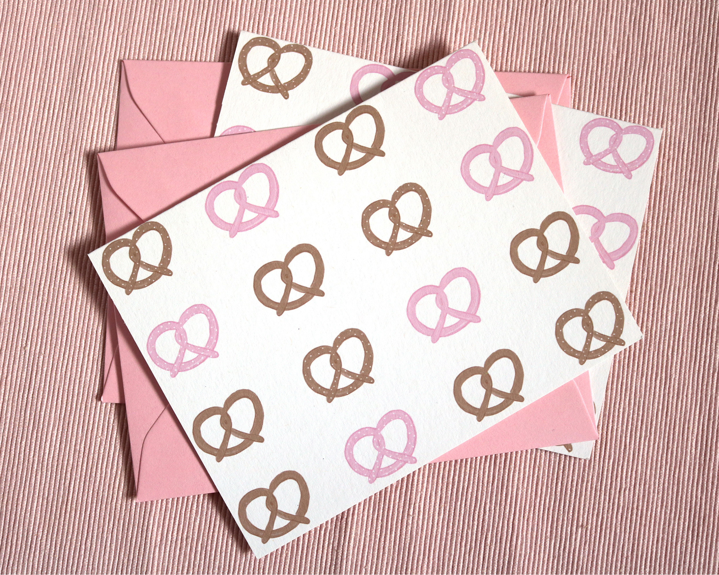 Illustrated Pink Pretzel Greeting Card Set