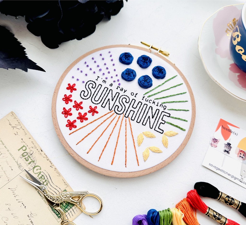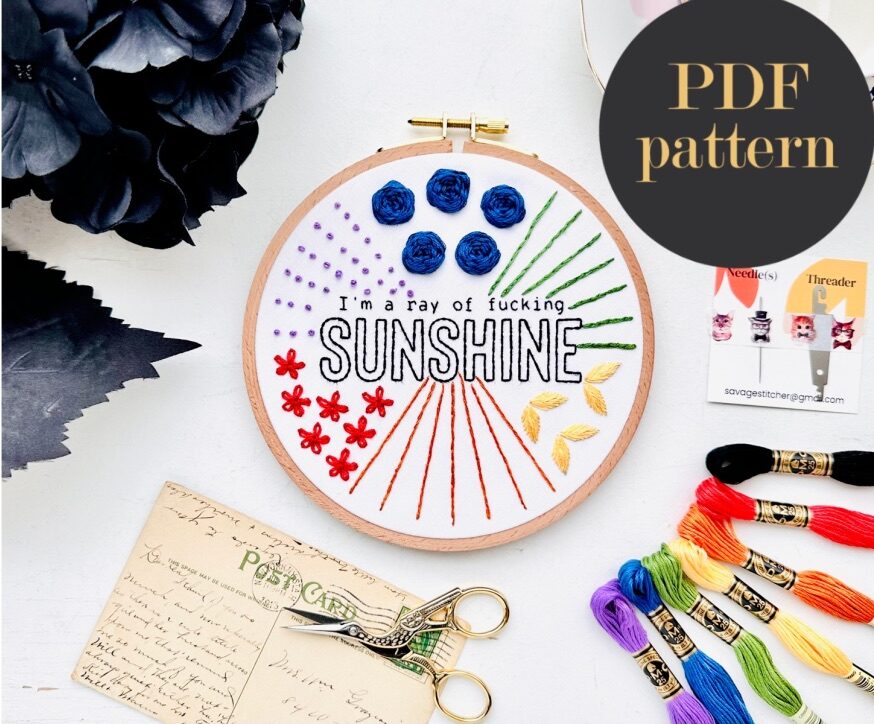 I’m a ray of fucking sunshine – Beginner Embroidery Stitch Sampler // Embroidery PDF Pattern Download 6 inch