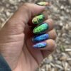 It’s a Party – Chrome Chameleon Flake and Neon French Tip Press-On Nail Extensions 10pcs