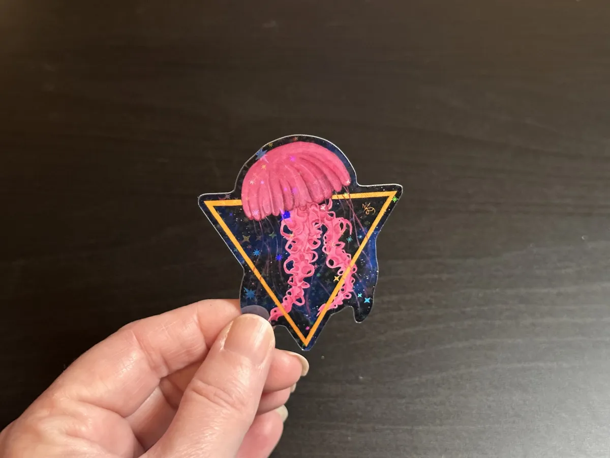Jellyfish in Space Sticker, Sci-Fi Fantasy Sea Creature Decal, Original Hand-Painted Art