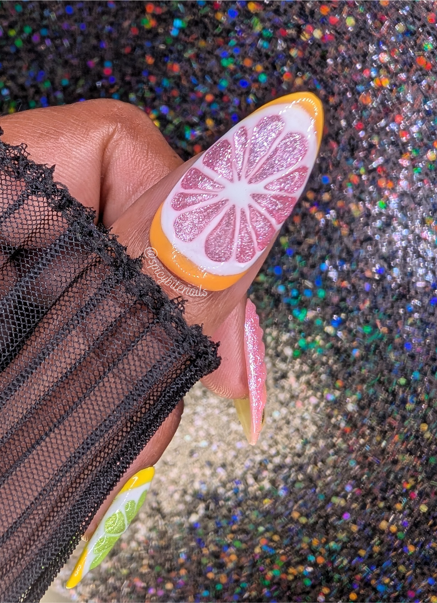 Juicy Fruit – 3D Citrus Lemon Lime and Grapefruit False Press-On Nail Extensions 10pcs