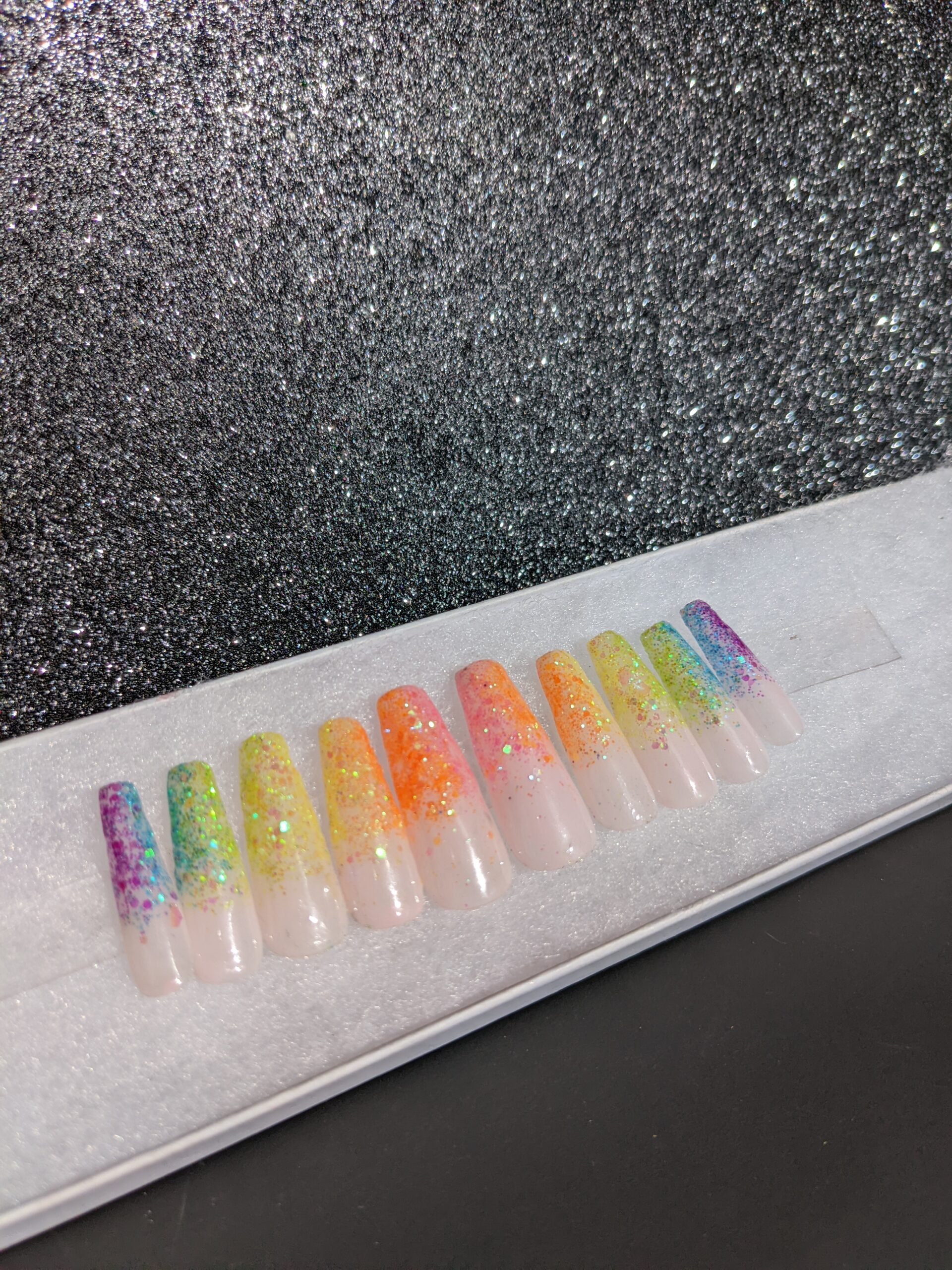 Kaleidoscope – Rainbow Glitter Ombre False Press-On Nail Extensions 10pcs