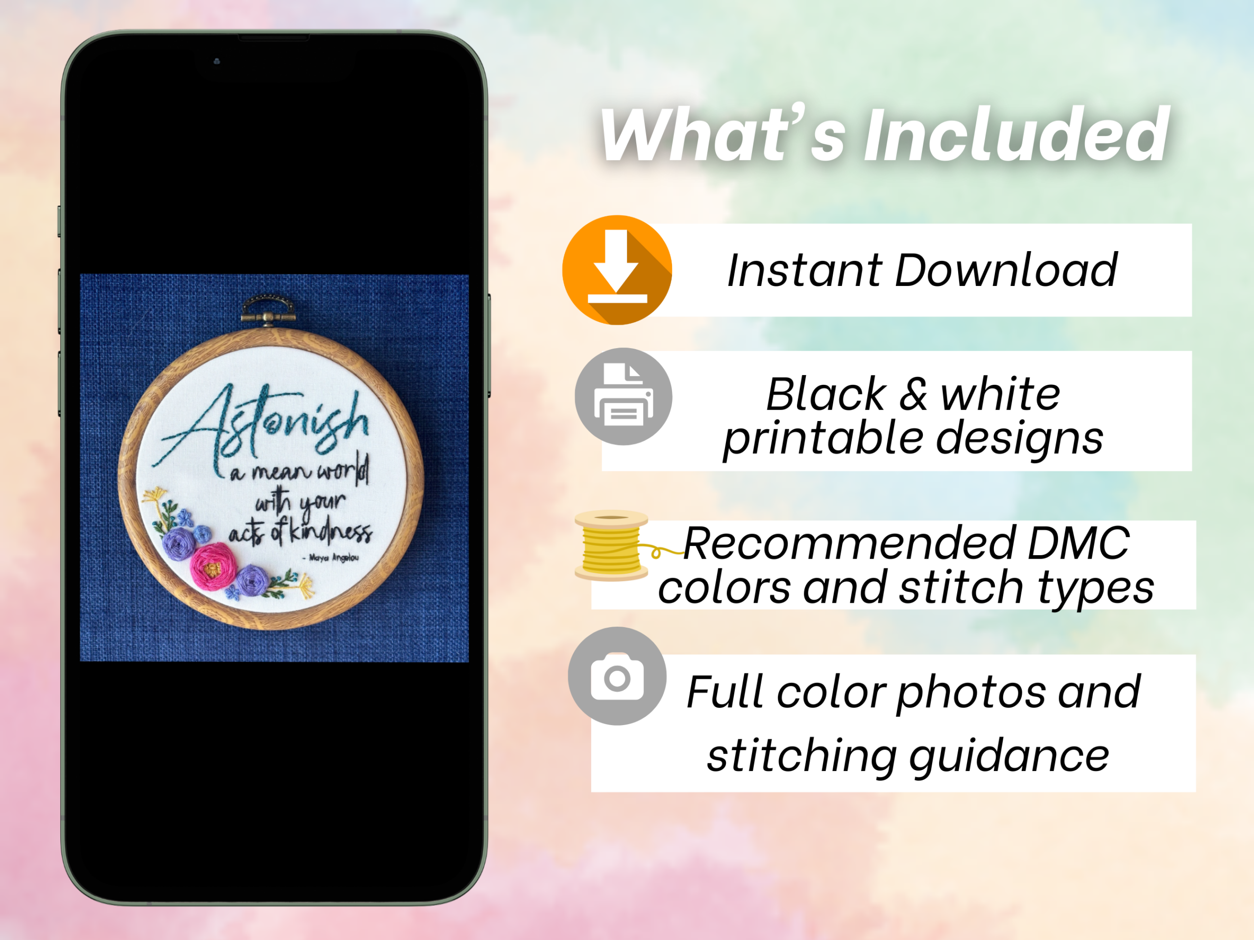 Maya Angelou Hand Embroidery Pattern: Astonish a mean world with your acts of kindness (PDF Download)