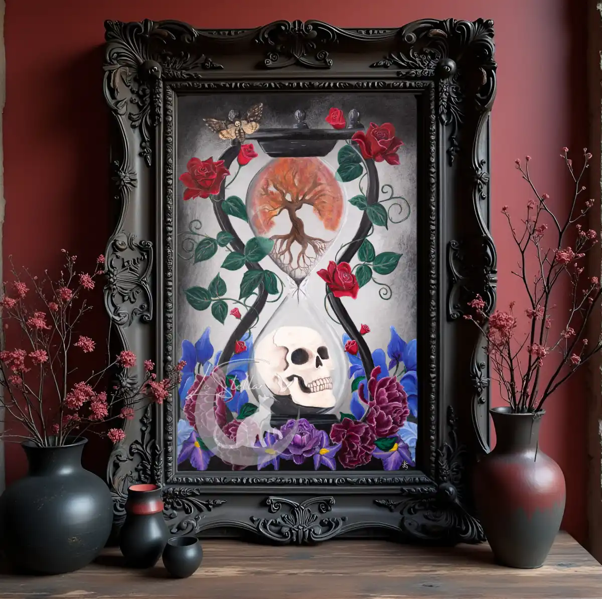 Memento Mori Skull Painting: Dark Floral Gothic Art Print