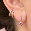 Mini Diamond Pavé Ear Wire Drop Earrings with Pink Tourmaline and Diamond – One of a Kind