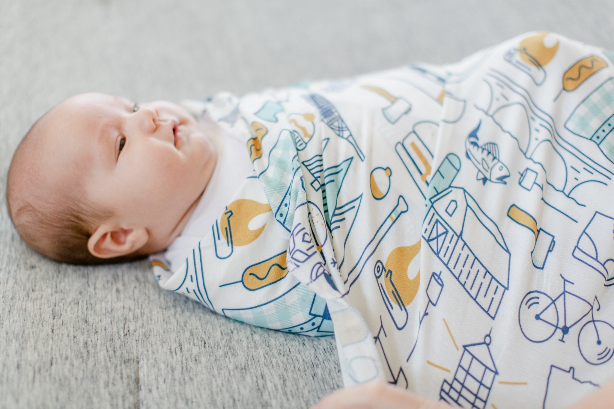 This swaddle blanket is made with an exclusive MN illustration fabric. This fabric celebrates all that is great about MN and you won’t find it anywhere else. It has a very nice stretch to it to make swaddling a piece of cake!