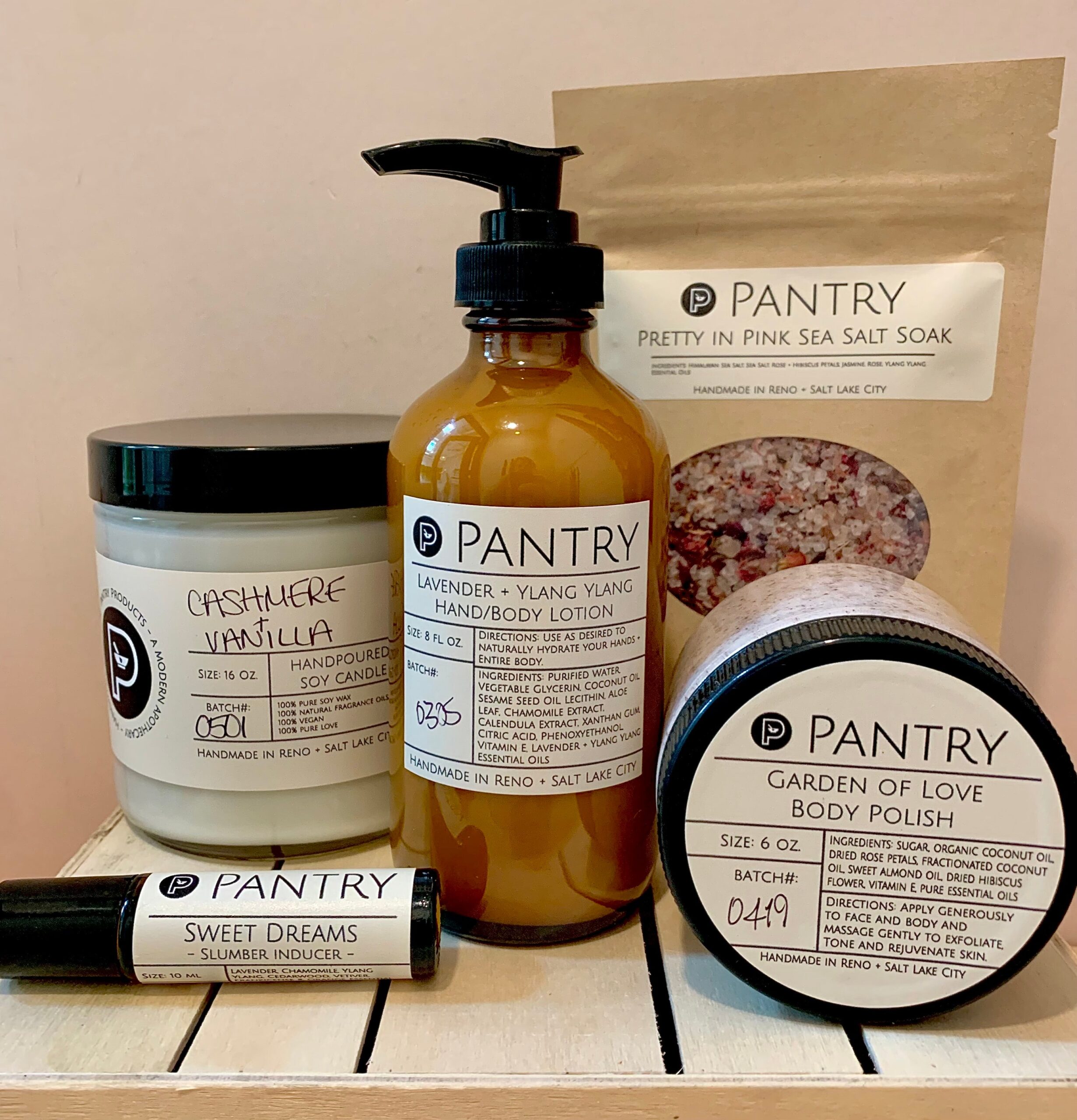 Several types of goods are also exempt from being returned including seasonal products, non-Pantry made items including but not limited to jewelry, skincare tools, and artwork, items purchased on sale, gift cards, and workshops.