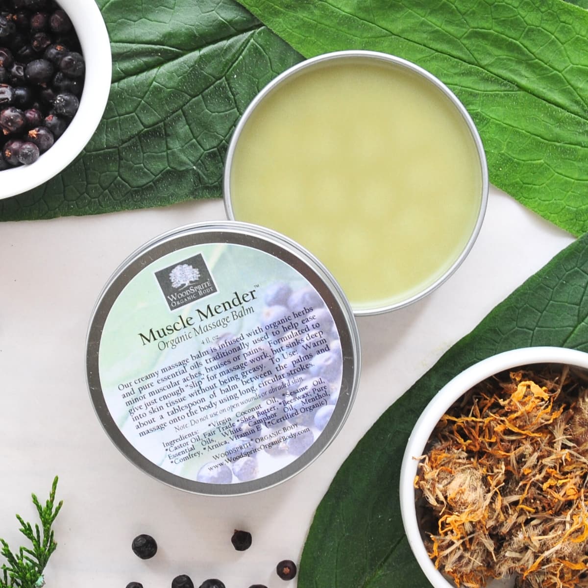 Originally created over two decades ago for spa therapists to use in deep tissue massage, our Muscle Mender™ Organic Massage Balm blends time-honored botanicals with targeted essential oils to ease minor aches, bruises, and soreness. It quickly became a customer favorite for its ability to bring comfort where it counts—without a greasy finish.