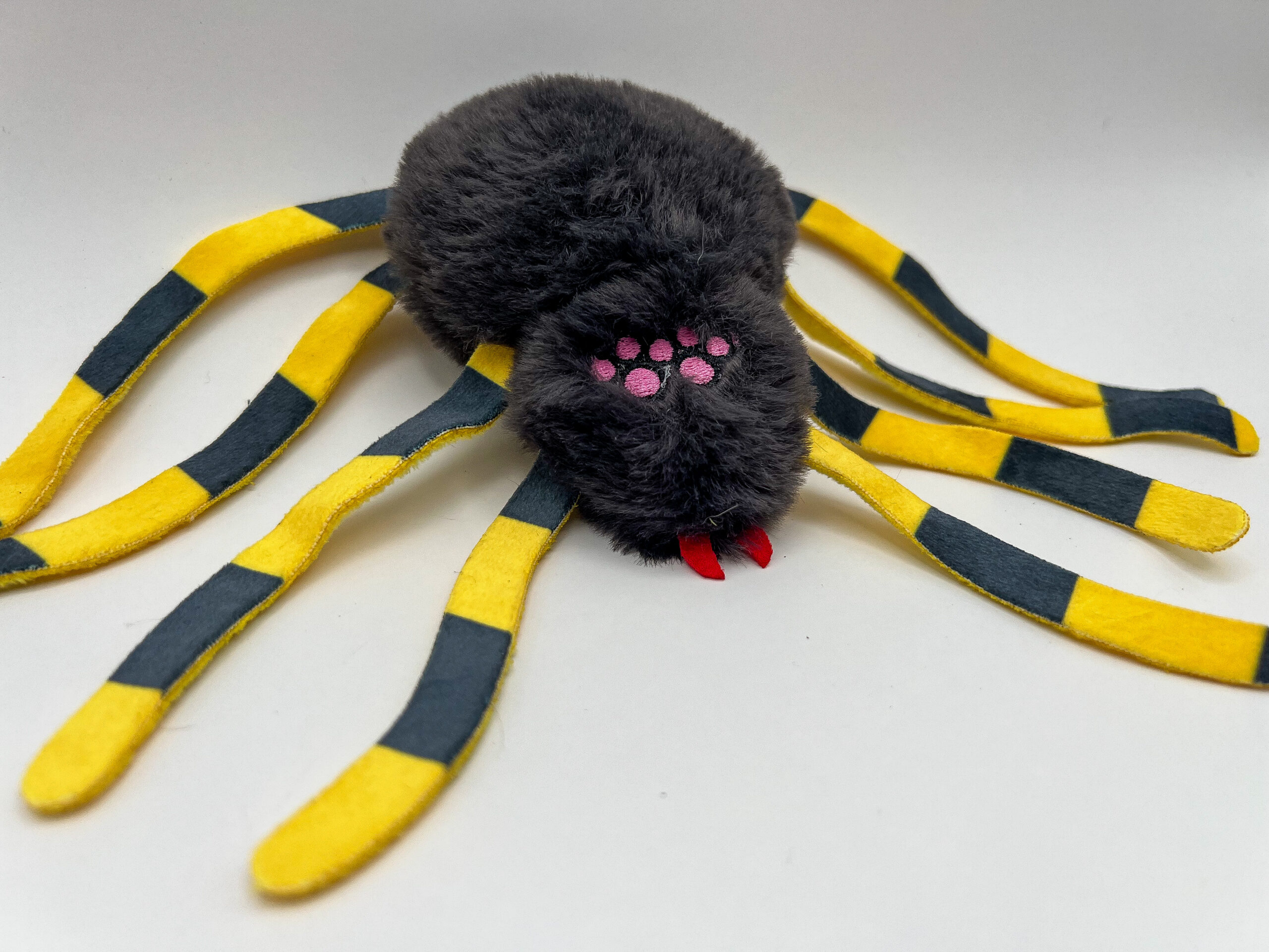 Named after the legendary riff queen Nancy Wilson of Heart, Nancy is a crinkle-stuffed, catnip-packed tribute to the power of closing your “eyes, eyes, eyes” and unleashing pure chaos. Covered in hypnotic peepers and rockin’ yellow-and-black legs, she’s made for cats and small dogs who love to thrash, toss, and creep people out mid-nap.