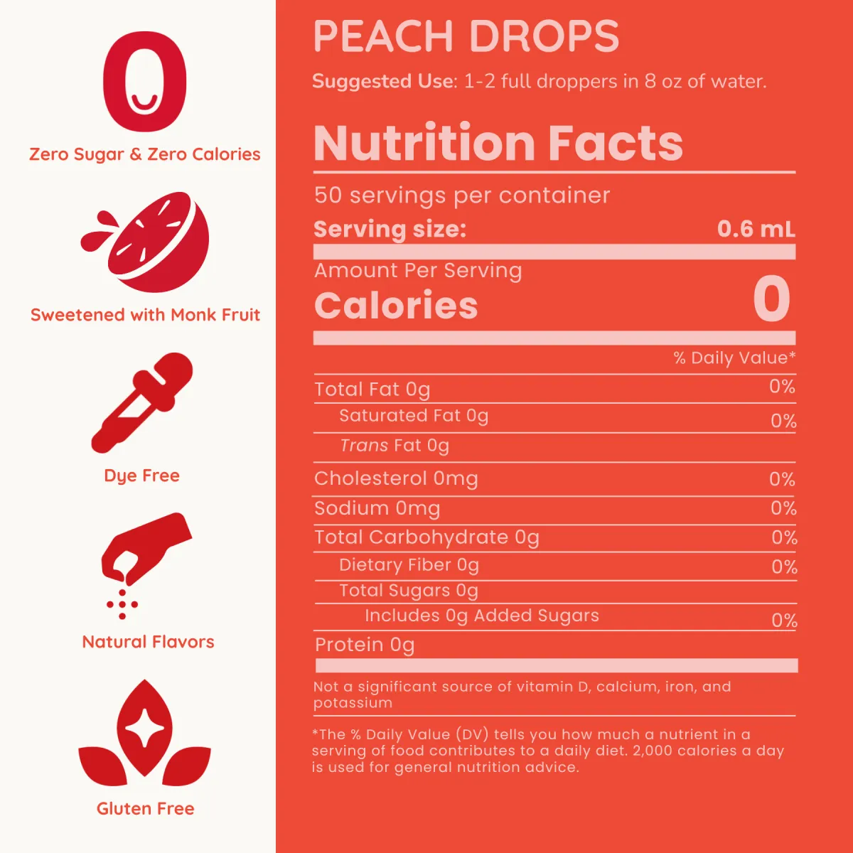 Ready for a juicy, sweet upgrade to your drink? Peach Drops bring all the sweet, ripe goodness of fresh peaches but with zero sugar.