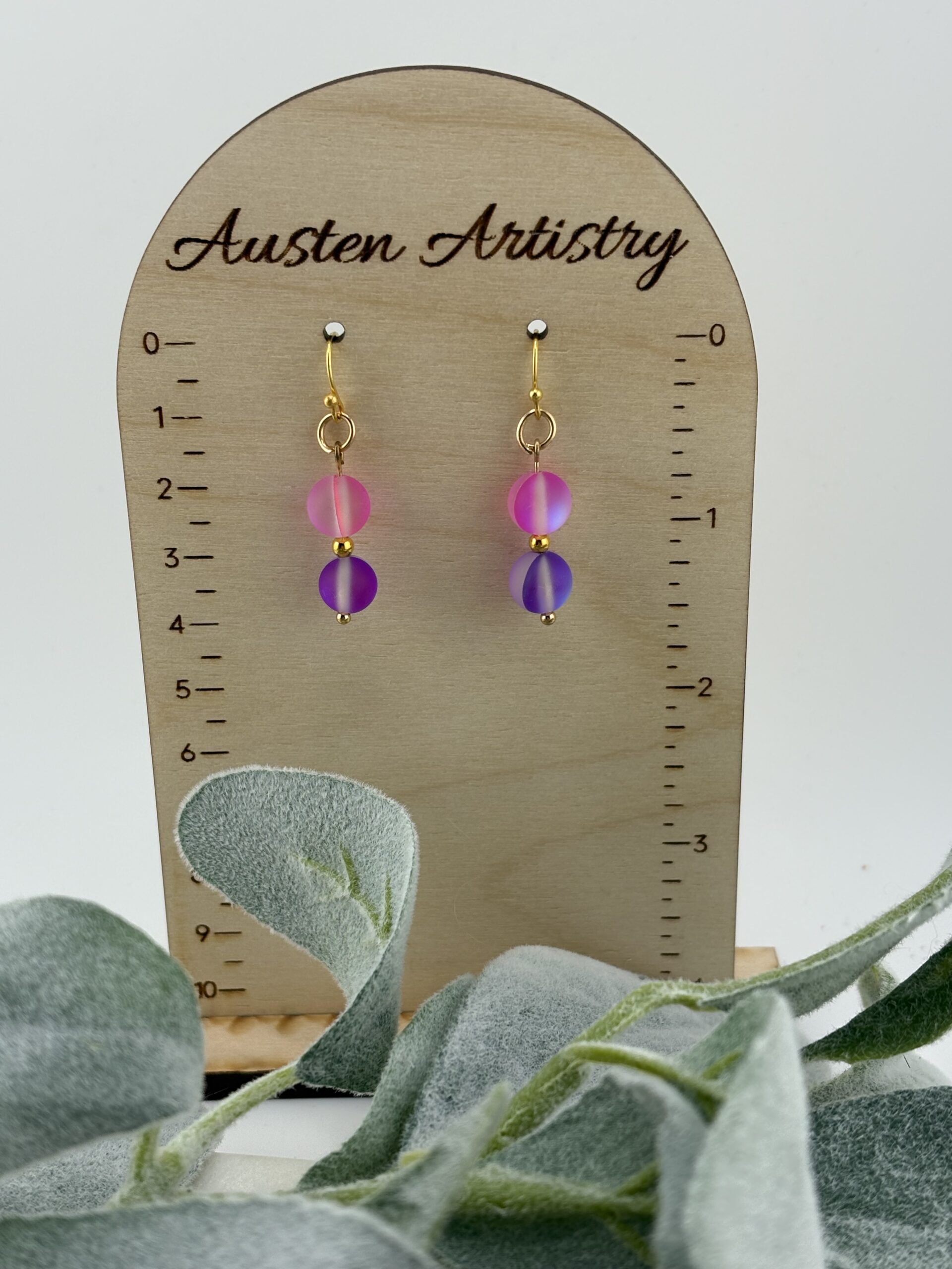 Bring a touch of whimsy to your wardrobe with these neon pink & purple earrings.