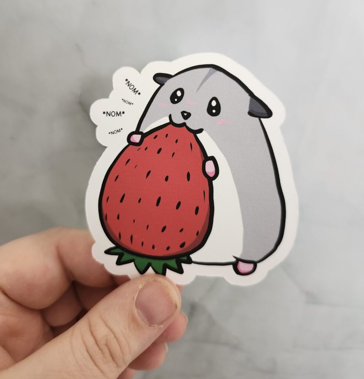 Nom Nom Nom Hamster Eating Strawberry Vinyl Sticker 3″