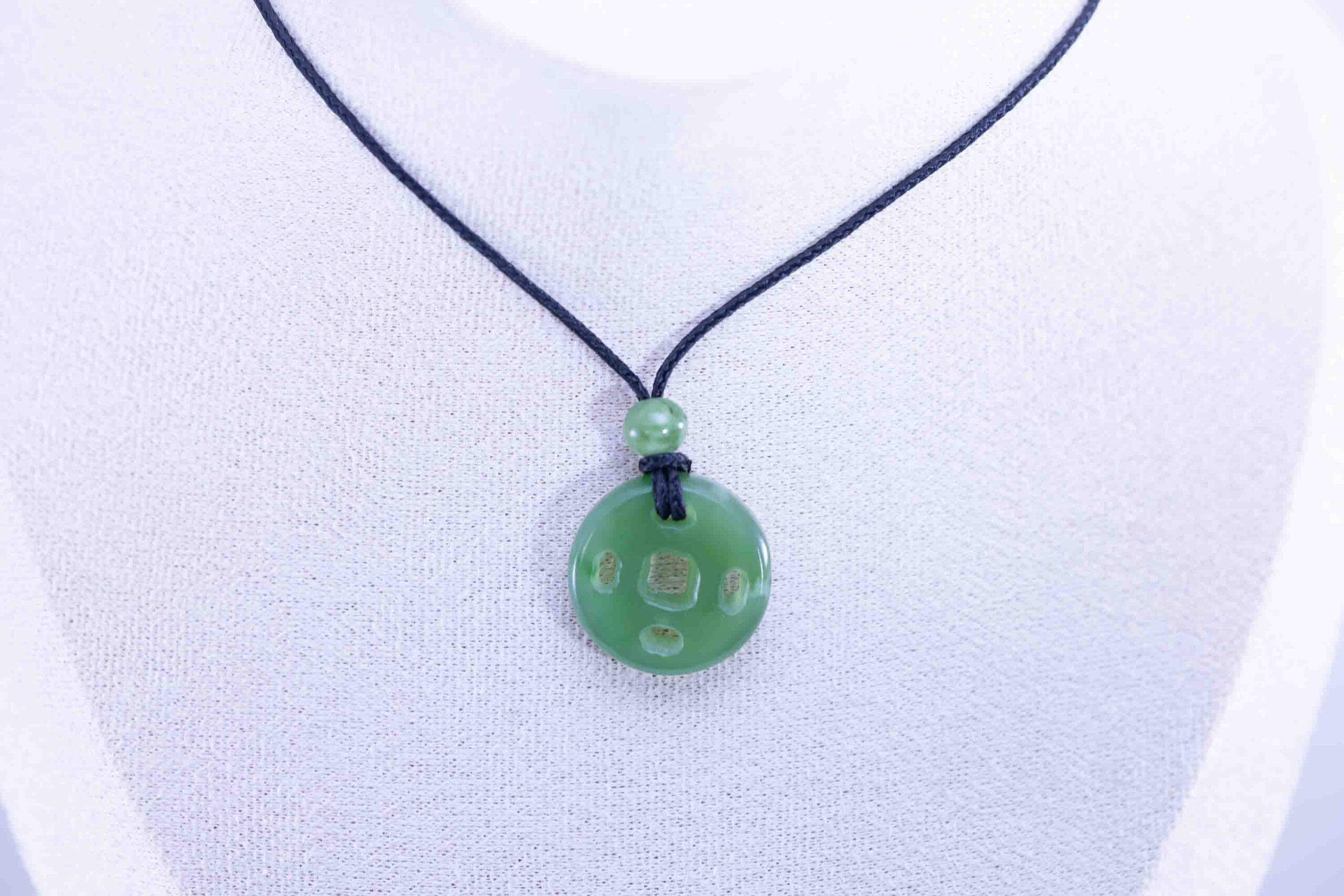 Hand-crafted with care, the smooth disc shape highlights the jade’s natural polish and durability, while the abalone inlay adds a symbolic and artistic focal point. The contrast between stone and shell creates a timeless design perfect for statement jewelry or meaningful keepsakes.