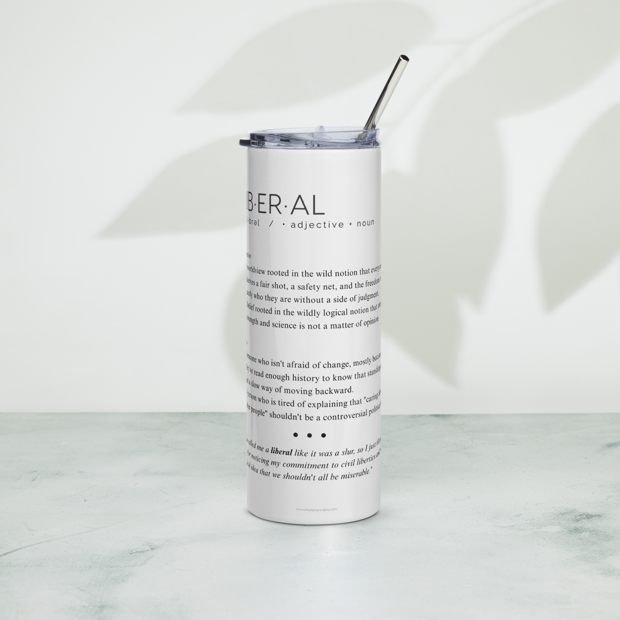 This stainless steel tumbler features an editorial definition designed to be read, noticed, and quietly lived with. Equal parts practical and pointed, it’s made for long days, strong opinions, and keeping your coffee (or resolve) intact.