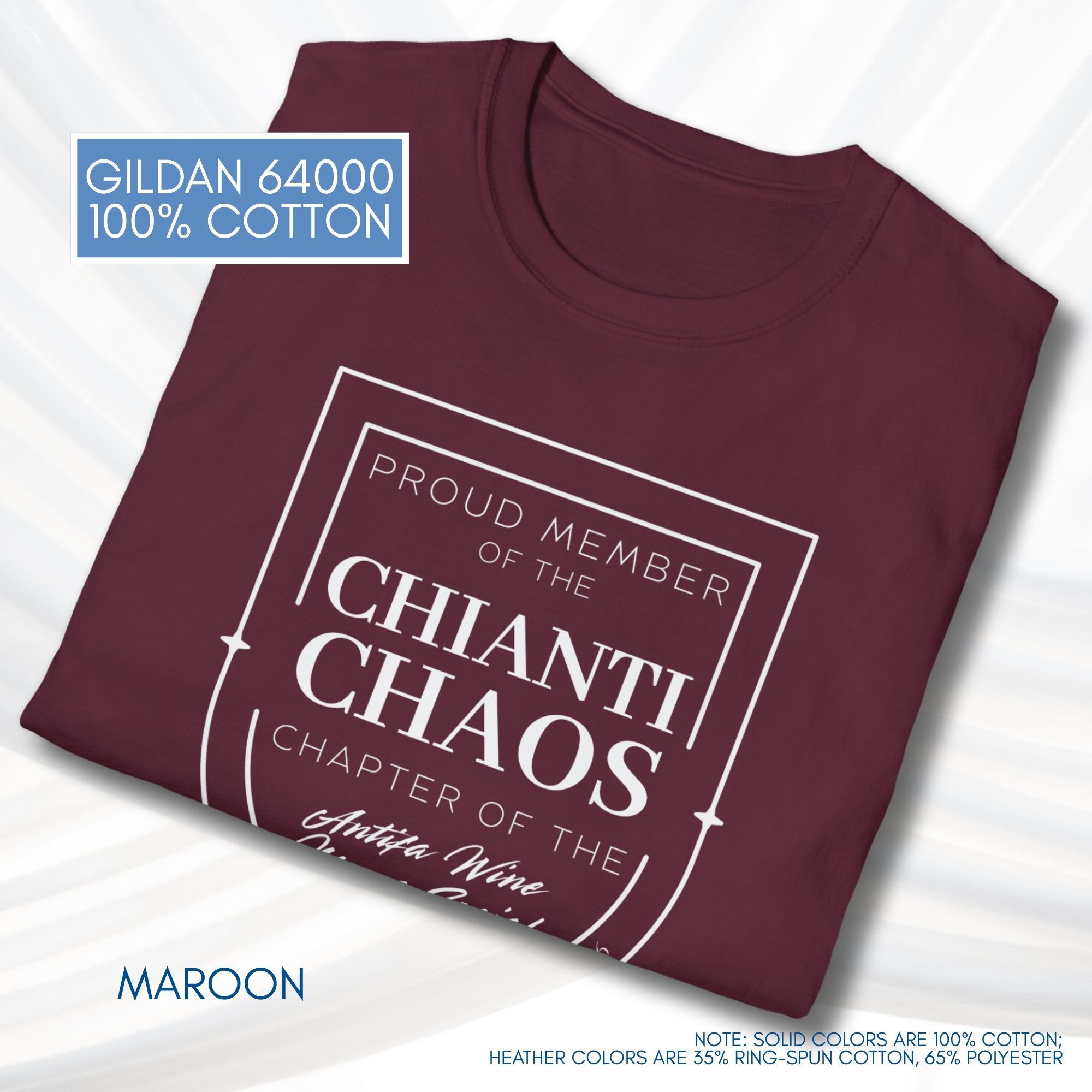 Soft ring-spun cotton drapes easily and keeps the print crisp, so the graphic stays sharp wash after wash. Wear it to long dinners, wine-tasting nights, protests, marches, book club, or relaxed evenings with friends — it’s the kind of shirt that sparks laughs and starts stories. The understated black canvas and white badge-style design give it a timeless, slightly irreverent look that fits right in at a cozy trattoria or a backyard gathering.