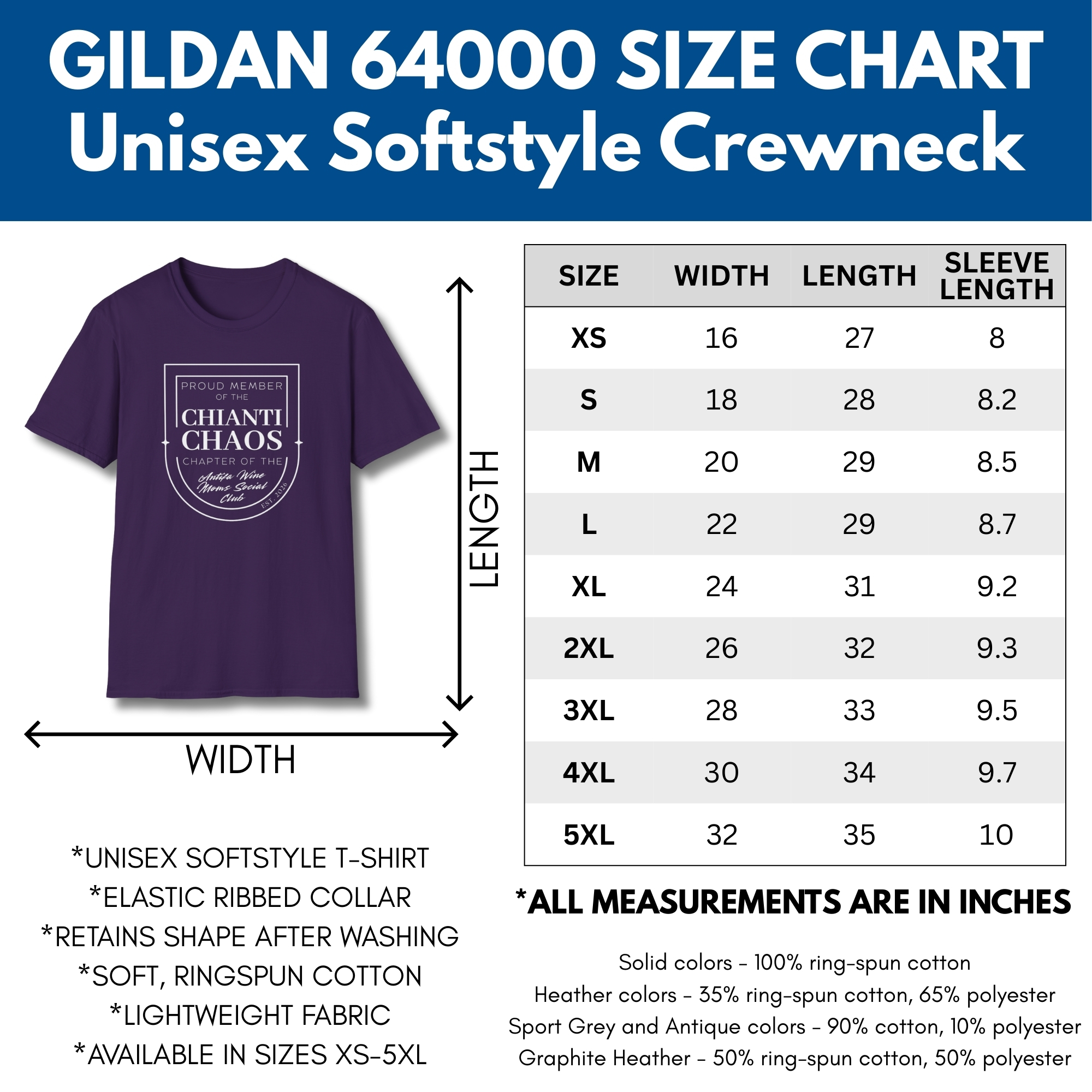 – Solid Colors are 100% Cotton, Heather Colors are Cotton-Poly Blend (50/50)